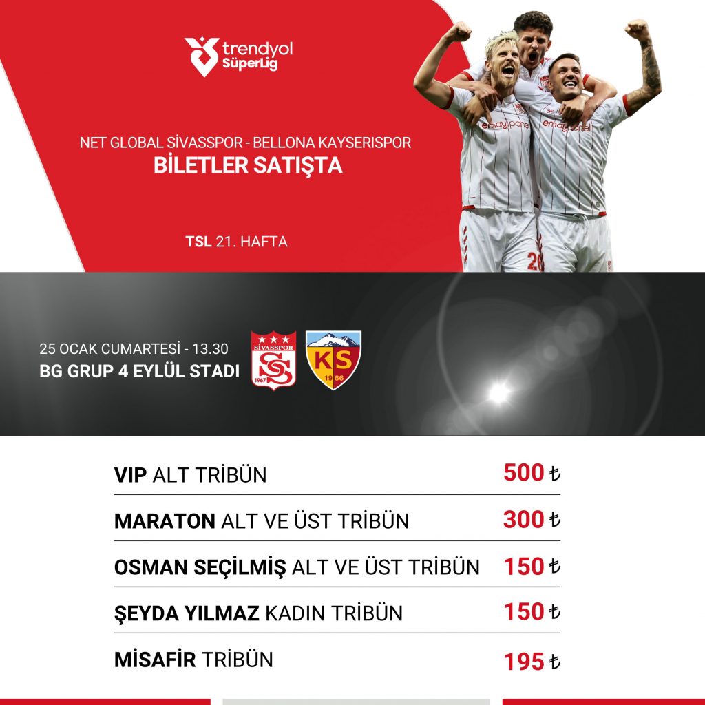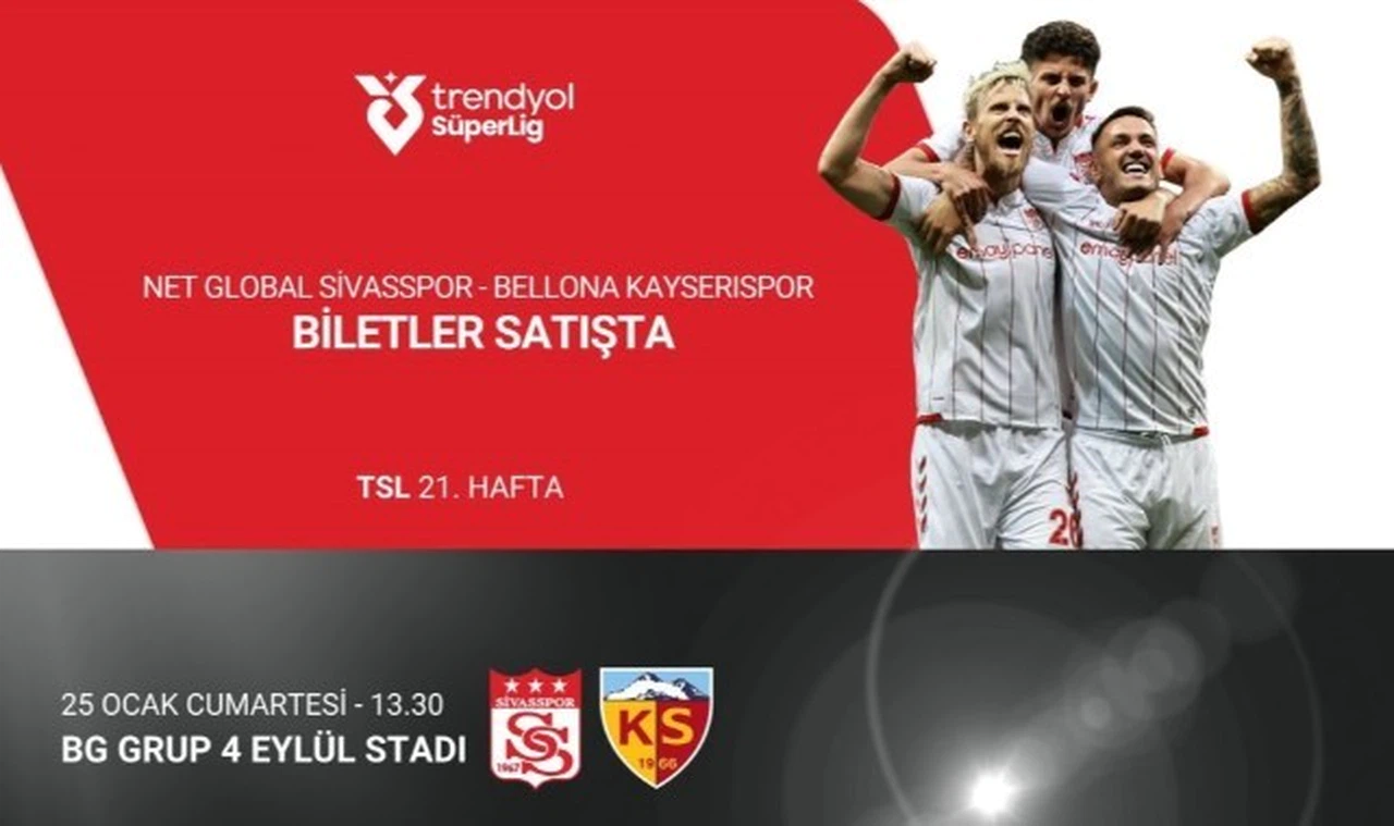 Net Global Sivasspor ile Bellona Kayserispor arasında oynanacak Trendyol Süper Lig 21. hafta maçının bilet satışı başladı.