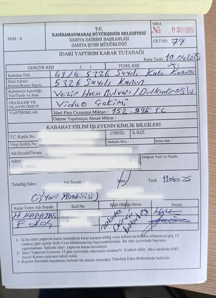 Kahramanmaraş’ta çevre ve yol güvenliğini tehlikeye atan bir beton mikseri, Dulkadiroğlu ilçesi Vezir Hoca Caddesi’nde seyir halindeyken yola beton harcı döktüğü gerekçesiyle 152 bin 895 Türk Lirası idari para cezasına çarptırıldı.