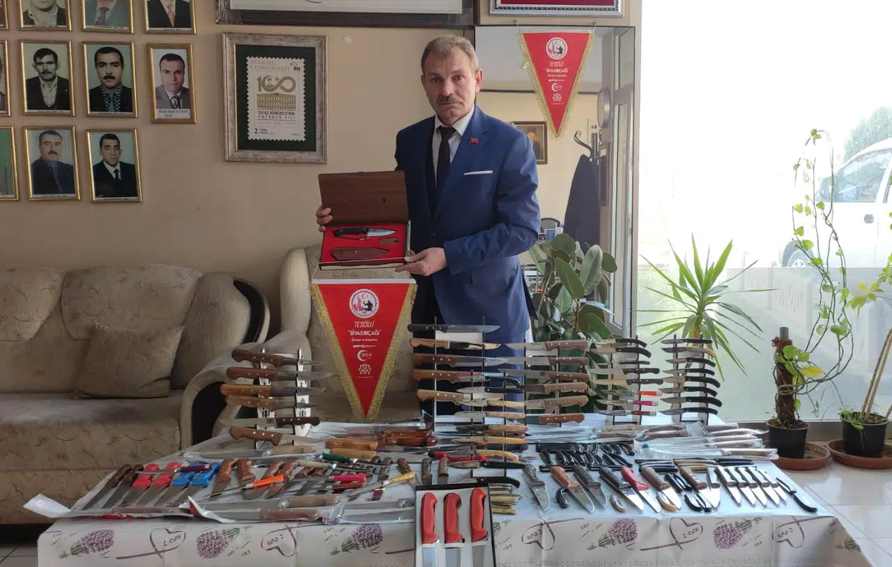 Demirciler Odası Başkanı Harun Koç’un öncülüğünde bir araya gelen bıçakçı esnafı, kendi imalatları olan bıçaklardan yaklaşık 170 adet bağışladı. Ticari değeri yaklaşık 60 bin lira olan bu ürünler, kermeste satışa sunulmak üzere Emniyet Müdürlüğü birimlerine teslim edildi.