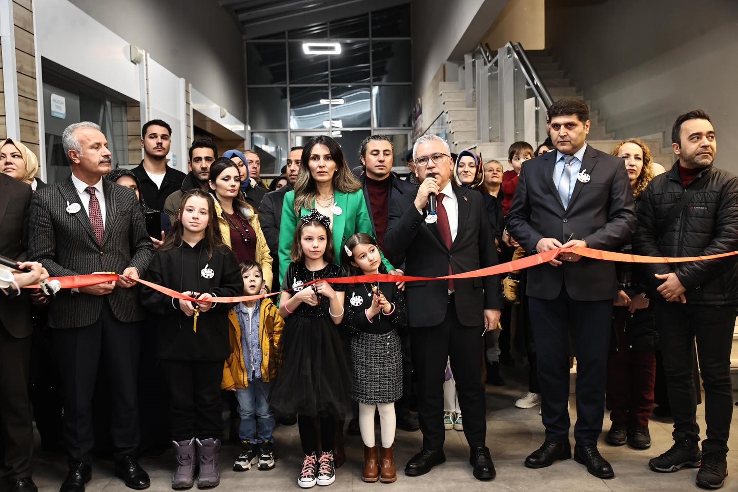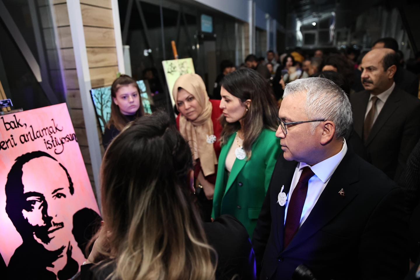 Açılış kurdelesini öğrencilerle birlikte kesen Vali Şimşek, öğrencilerin eserlerini inceleyerek bilgi aldı.