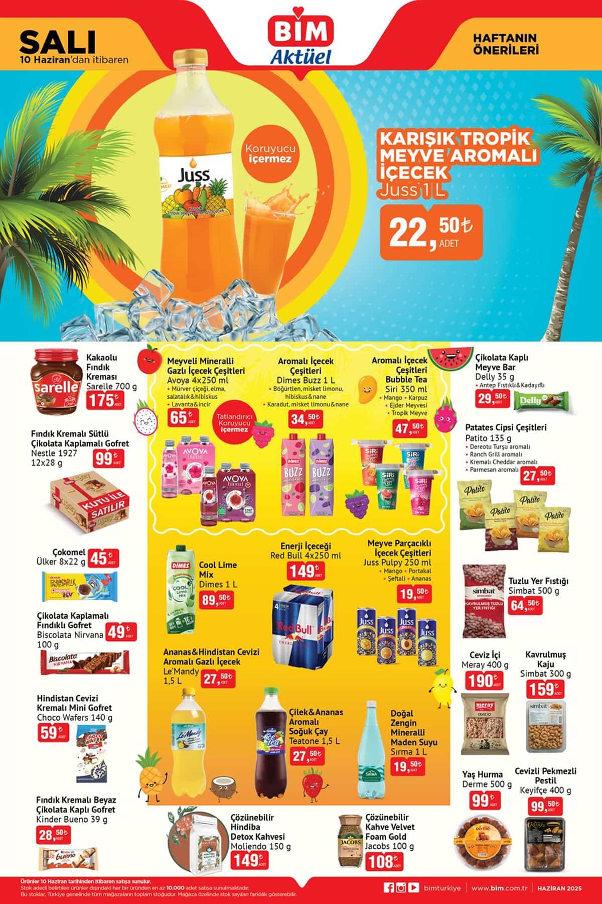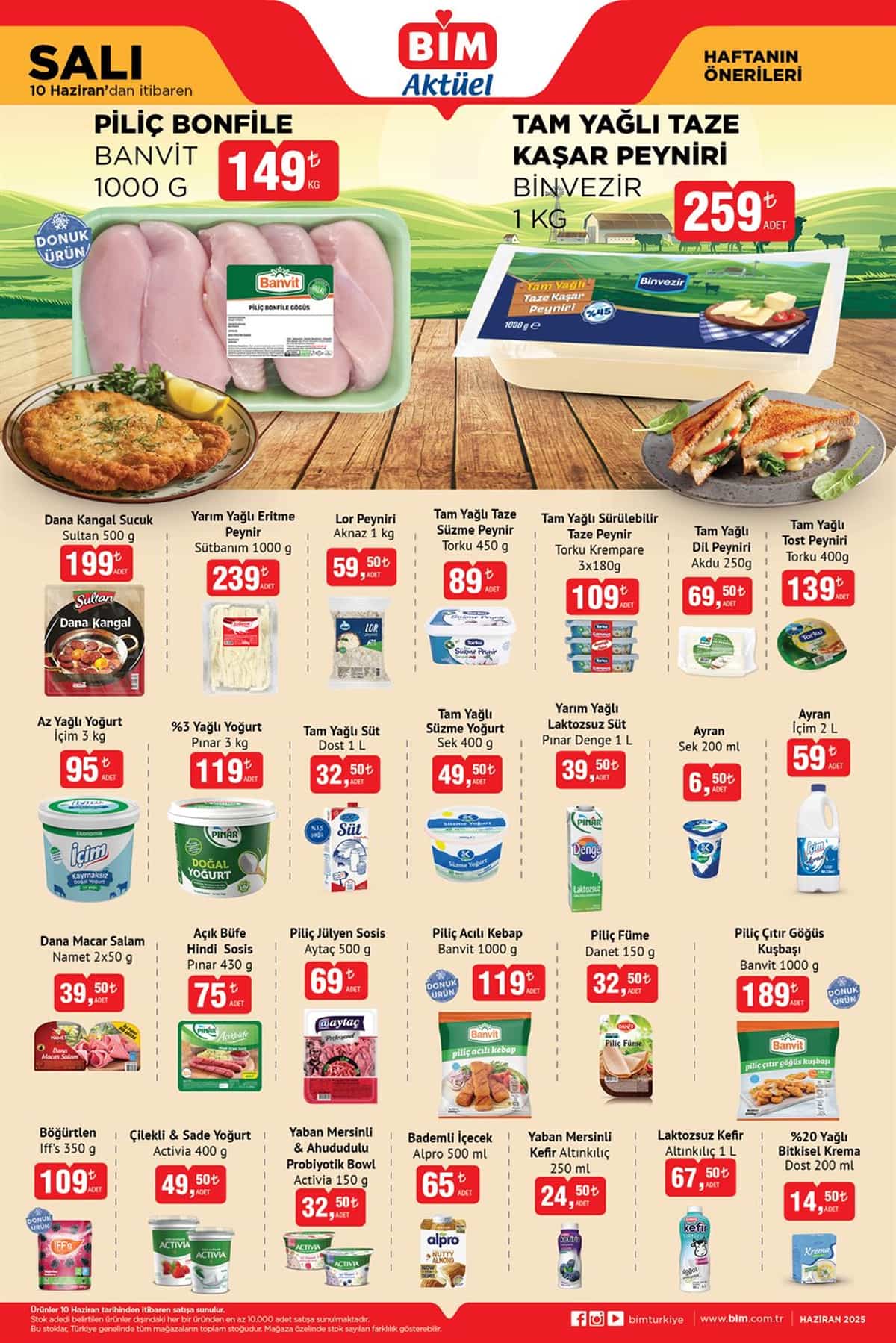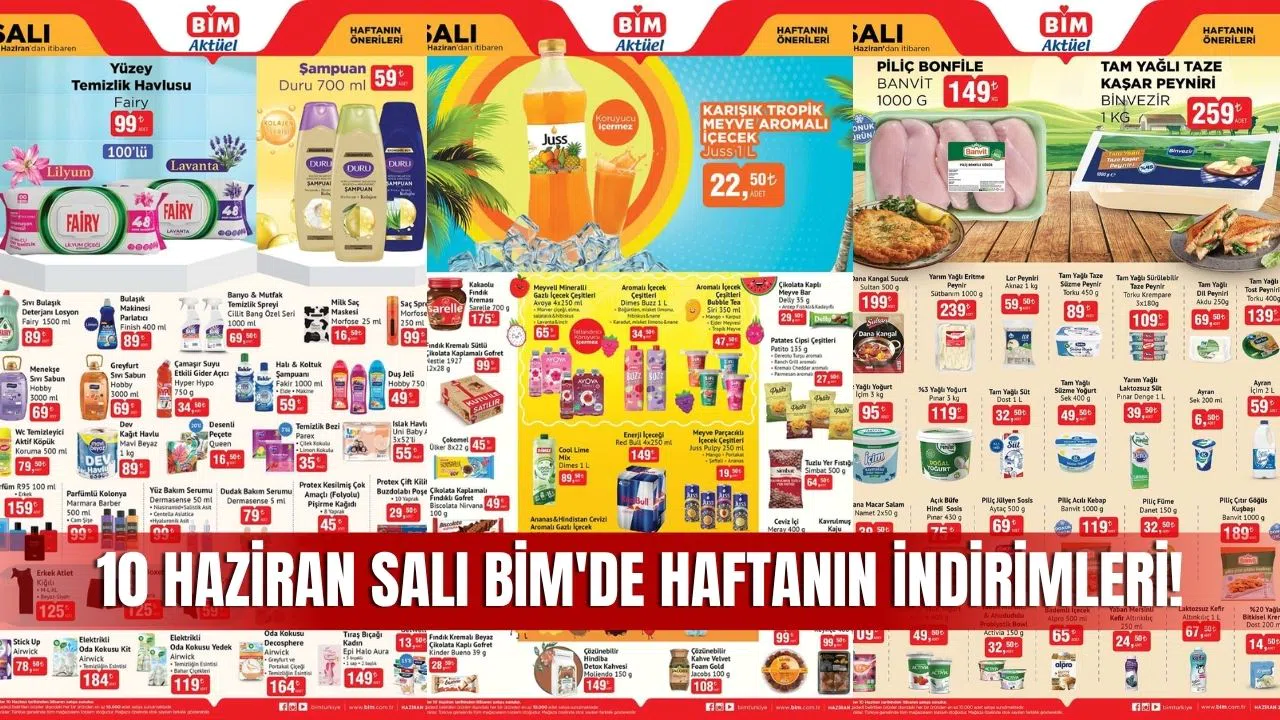 BİM 10 Haziran 2025 Salı aktüel ürünler kataloğu yayınlandı. BİM Market, her hafta olduğu gibi bu hafta da müşterilerine özel avantajlı fiyatlarla dolu kampanya ürünlerini duyurdu. 17 Haziran 2025 tarihine kadar geçerli olacak bu haftanın BİM aktüel kataloğunda; temizlik ve hijyen ürünlerinden iç giyime, kişisel bakımdan süt ve et ürünlerine, kahvaltılıklardan içeceklere kadar onlarca fırsat raflarda yerini alacak.