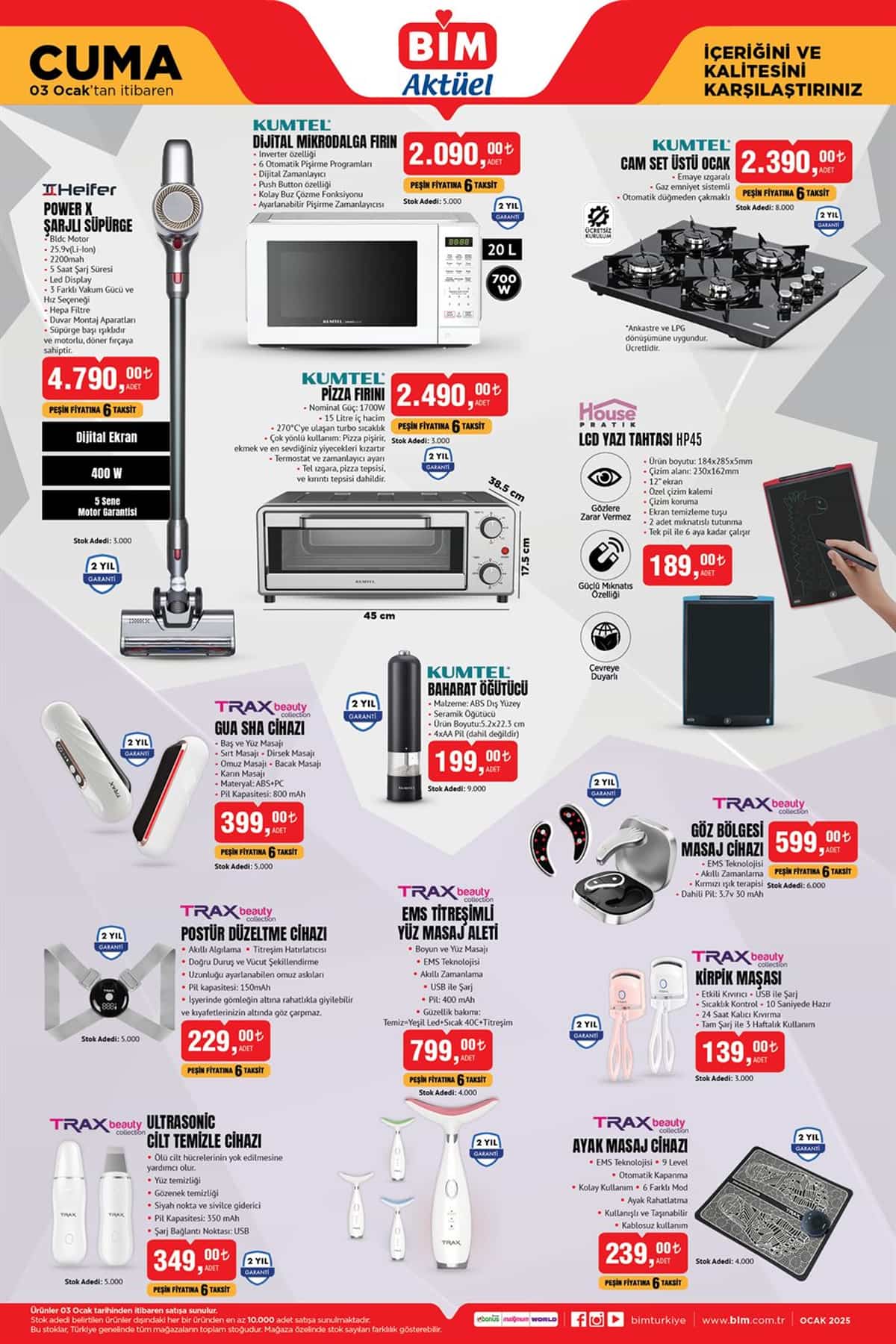 BİM Market, 3 Ocak 2025 tarihli aktüel kataloğu ile yeni yılın ilk haftasında müşterilerinin taleplerine cevap verecek harika ürünlerle geliyor. Onlarca kategoride indirim fırsatları sunan katalog, 10 Ocak 2025 tarihine kadar geçerli olacak.