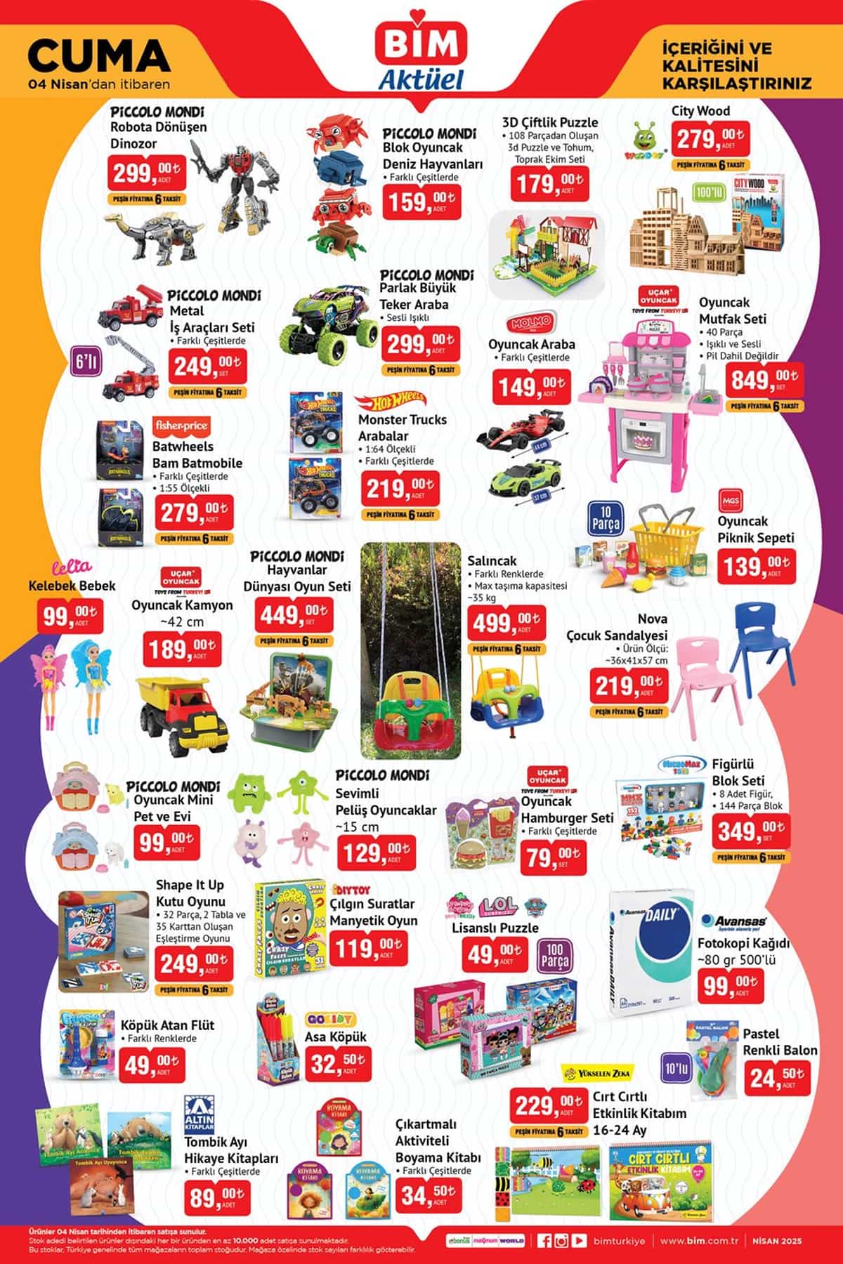 BİM, 4 Nisan 2025 Cuma itibarıyla geçerli olacak yeni aktüel kataloğunu duyurdu. Birbirinden cazip indirimlerin yer aldığı bu haftaki katalogda teknoloji, elektrikli ev aletleri, kişisel bakım, ev tekstili, oyuncak ve mutfak ürünleri gibi birçok kategoride fırsatlar sunuluyor. Kampanya kapsamında yer alan ürünler, 11 Nisan 2025 Cuma gününe kadar BİM mağazalarında satışta olacak.