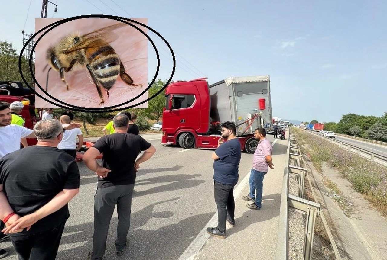 Bursa'nın Orhangazi ilçesinde seyir halindeki tır sürücüsü arının ısırması sonucu şoka girdi. Kontrolden çıkan tır makas atıp trafiği kapattı. İstanbul Bursa karayolu sürücünün hastaneye kaldırılması ve makas atan tırın kaldırılmaması üzerine saatlerce kapalı kaldı, yüzlerce sürücü ve yolcu da yolda bekledi.