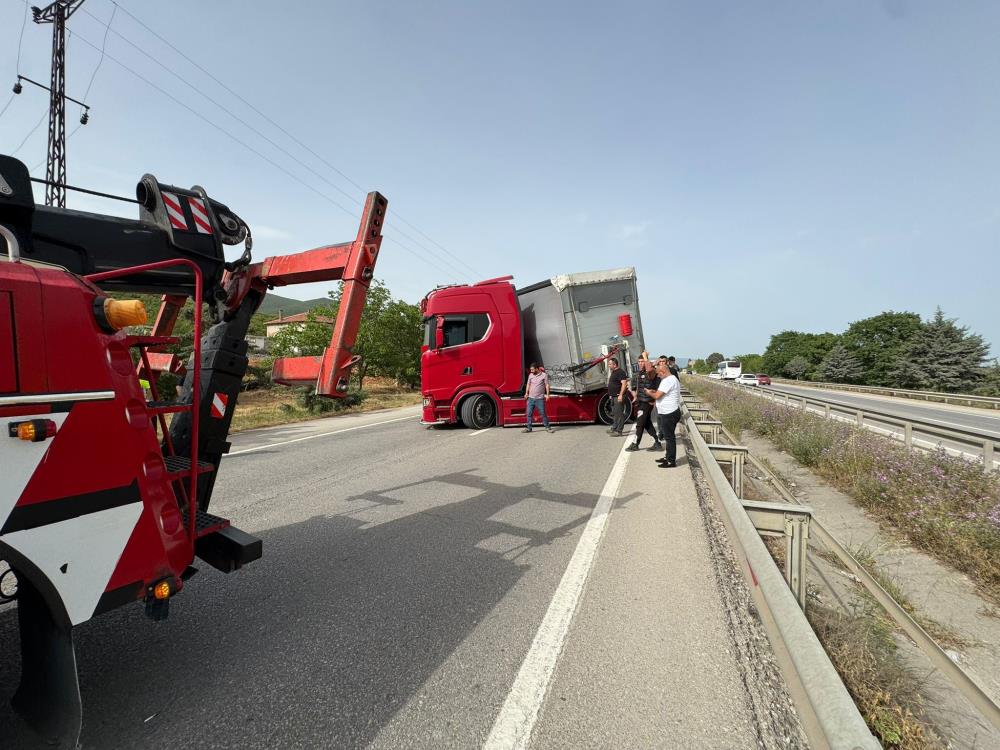 Kaza dün akşam saatlerinde Orhangazi - Gemlik yolu Gedelek trafik ışıklarında meydana geldi. Yalova'dan Bursa yönüne seyir halinde bulunan 48 yaşındaki Bülent Ç. idaresindeki 61 KN 278 plakalı tır yoldan çıkıp makas attı. Ekipler olay yerine geldiğinde sürücünün arı sokması sonucu şoka girip kaza yaptığını belirlediler.