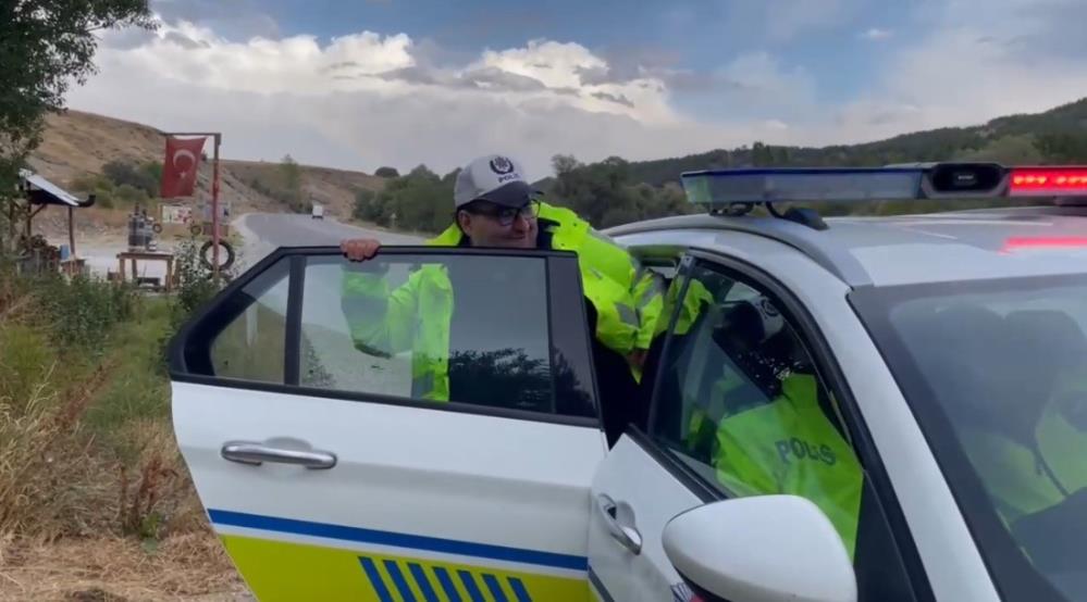 Telsizle haberleşti, araçları durdurdu, sürücülerle iletişim kurdu. Gerçek bir polis gibi görev alan genç, o anların heyecanını doyasıya yaşadı. Bu anlamlı etkinlikte polis ekipleri de onun mutluluğuna ortak oldu.