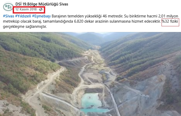 Devlet Su İşleri (DSİ) 19. Bölge Müdürlüğü’nün 2018 yılında resmi internet sitesinden yaptığı açıklamaya göre barajın fiziki gerçekleşme oranı yalnızca %32 olarak duyurulmuştu. Ancak bu açıklamadan iki yıl sonra, 2020 yılında aynı kurumun internet sitesinde baraj inşaatının başlama tarihi olarak 2020 yılı yazı gösterildi. Şaşırtıcı olan ise bu tarih üzerinden beş yıl geçmesine rağmen barajın hâlâ hizmete alınamamış olması.