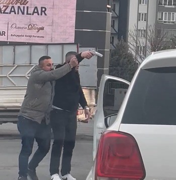 Sürücülerden biri bagajı açtı, diğer sürücü de belinden çıkarttığı tabanca ile tehditler savurdu. Diğer sürücü de bu kez bagajından çıkarttığı kesici alet ile kendisini savundu. Çevredeki vatandaşların araya girmesiyle taraflar sakinleşti.