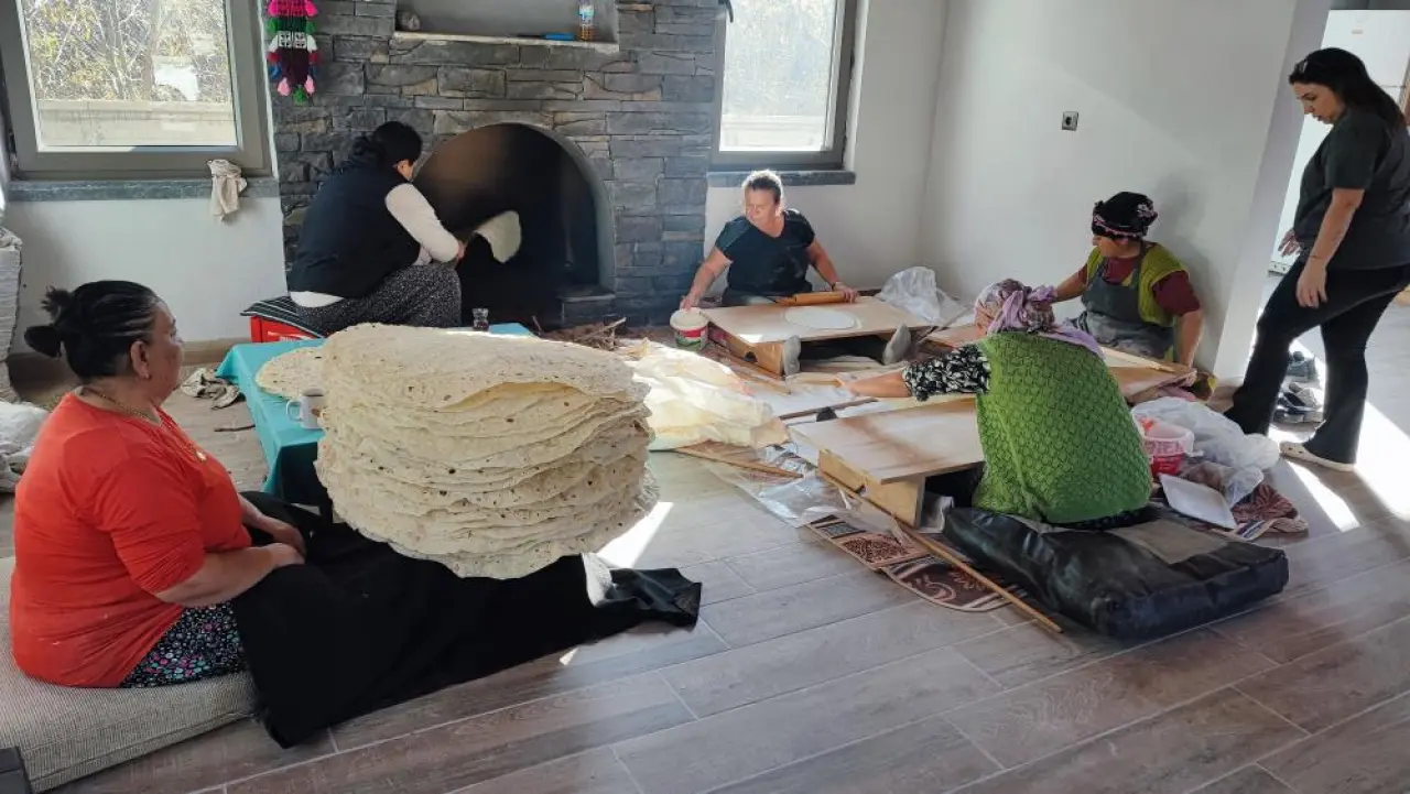 Tandırı olmayan veya un bulamayan kadınların eksikleri, diğer kasaba sakinleri tarafından tamamlanıyor. Kimi un getiriyor, kimi pişirmeye yardım ediyor. Herkesin katkısıyla hazırlanan yufkalar, kış boyunca sofraları süslüyor.