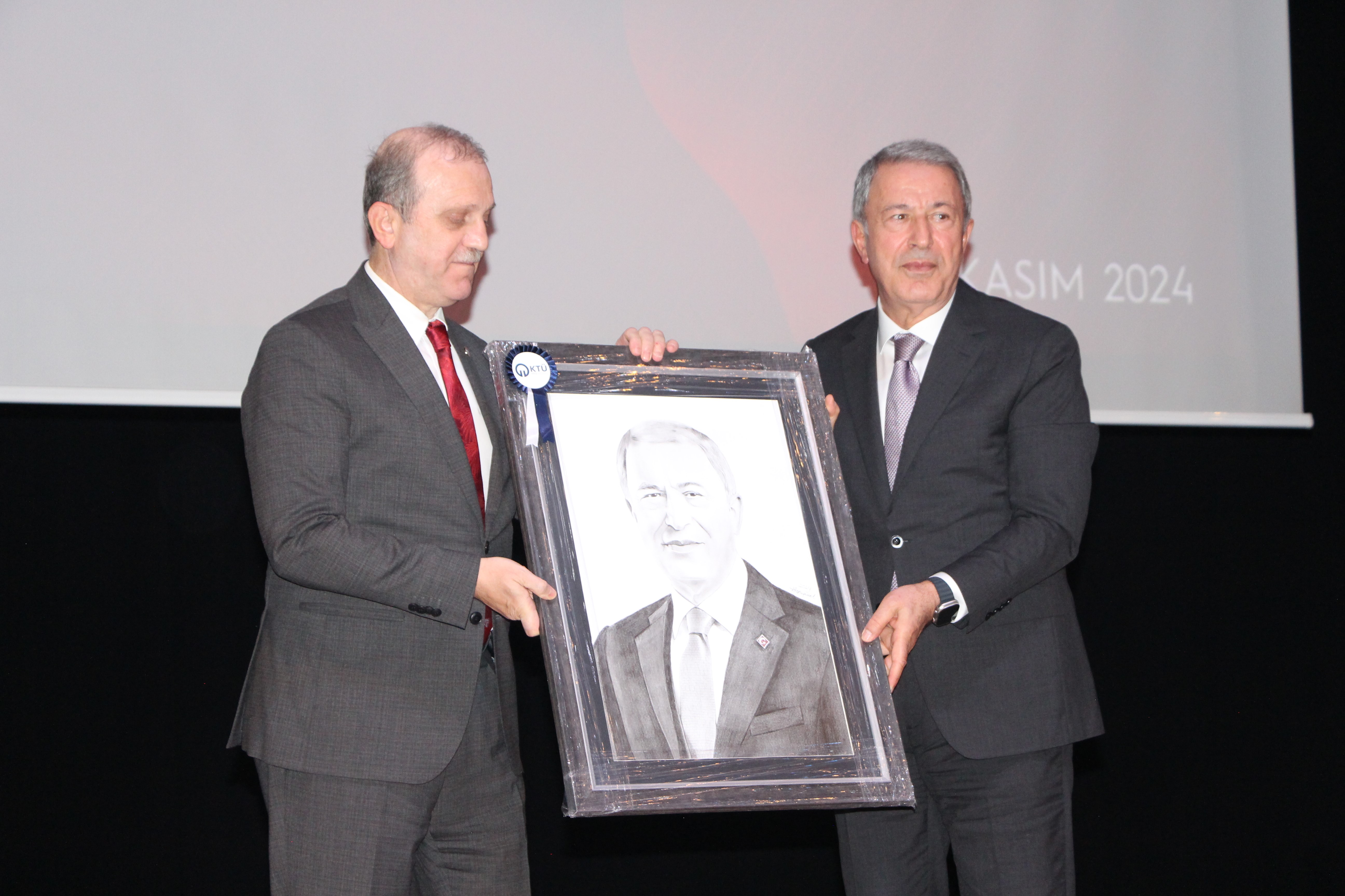 Konuşmanın ardından KTÜ Rektörü Çuvalcı tarafından Hulusi Akar"a hediye takdim edildi. Program toplu fotoğraf çekiminin ardından sona erdi.