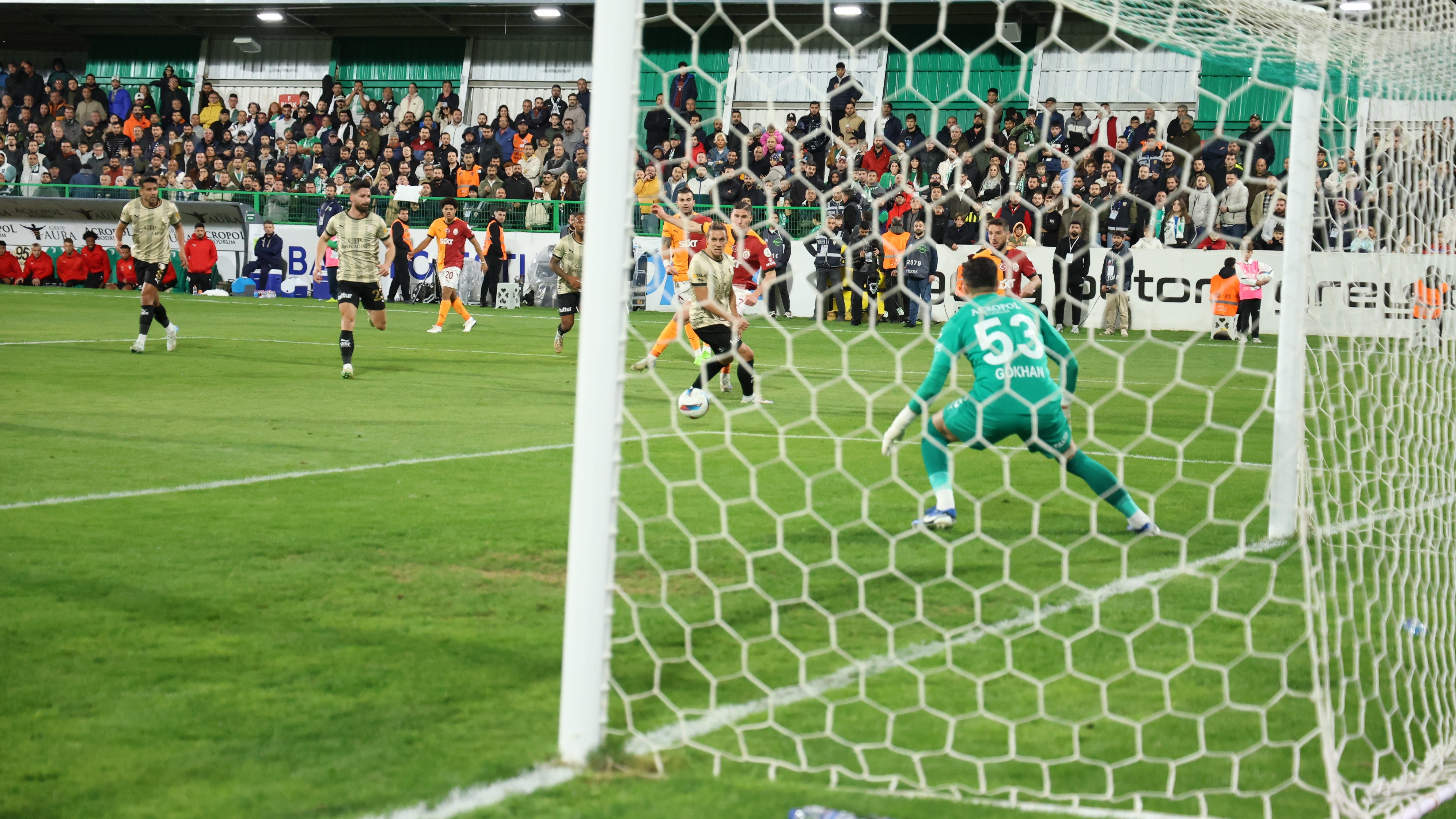 21. dakikada sol taraftan gelişen Bodrum FK atağında Fredy, ceza sahası içi sol çaprazında topla buluştu. Fredy'nin şutunda meşin yuvarlak kaleci Muslera"da kaldı.