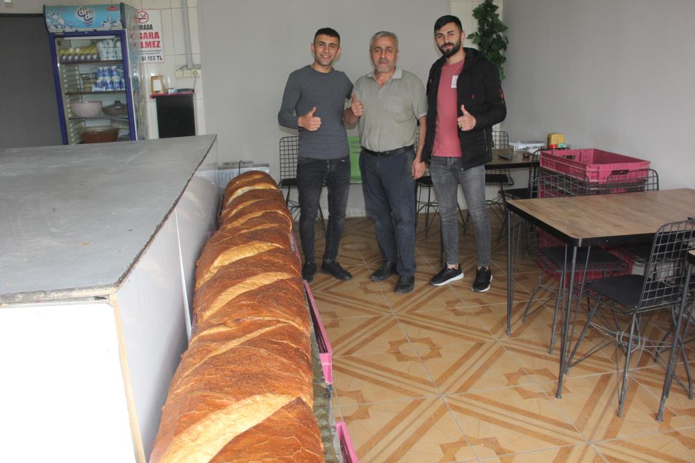 Daha öncede böyle bir ekmek yaptığını belirten fırıncı Erdoğan Çiçek; “1 metre 90 santim uzunluğunda bir ekmek yapmıştım. Daha büyüğünü yapmak istedim. Bugün de 3 metre 80 santim uzunluğunda ekmek yaptım. Bu ekmeği yapmam uzun sürdü. Hamurun kabarması, fırına girmesi 7 saat sürdü. 7 saat sonrasında bu ekmeği meydana getirdik. 30 kilo un ile bu ekmeği tek başıma yaptım. Bu ekmekte en az 130 tekli ekmek var burada. Ekşi mayalı olduğu en az 10 gün taze kalır, bayatlamaz bu ekmek” dedi.