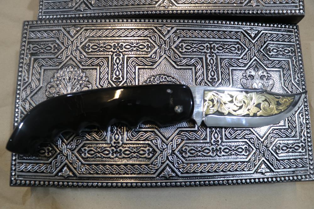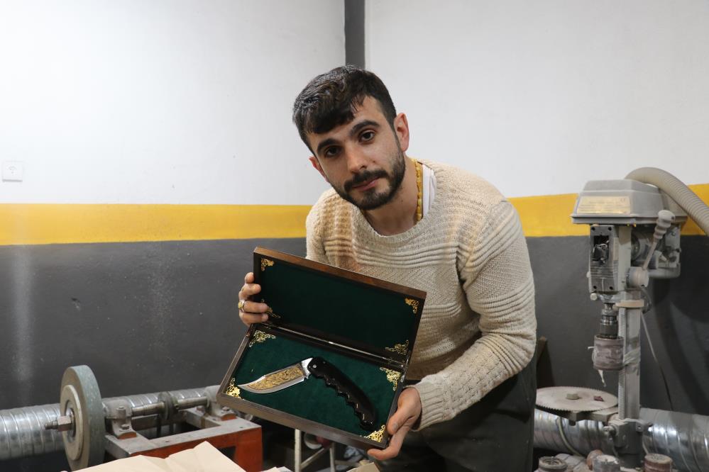 Daha önceden yapılmamış bir bıçak ürettiklerini söyleyen Emre Göçeri, "Türkiye’de daha önceden yapılmamış olan manda boynuzundan bir bıçak yaptık. Üzerinde gravür işlemeli ve 24 ayar altın kaplamalı bir ürün yaptık. Bu bıçağın en önemli yanı manda boynuzunun arasında hiçbir kalıp ve mekanizma sistemi koymadan 30 santimetrelik bir ürün çıkarttık. Manda boynuzu, koç boynuzundan kat kat sağlam bir boynuzdur. Bu da bize bir mirastır çünkü ülkemizde manda sayısı çok az sayıdadır.