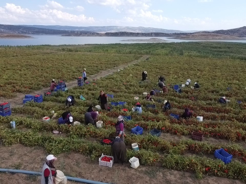 Hilal İnaç ise bu yıl itibariyle domates hasadına katıldığını söyleyerek, “Burada çalışan birçok kadın evine ekmek götürüyor. Biz yetkililerimizden salça fabrikası istiyoruz. Daha çok kişiye iş imkanı sağlansın. Bu tarlada 70 kişi çalışıyorsa eğer fabrikayla bu sayı daha artsın istiyoruz” şeklinde konuştu.