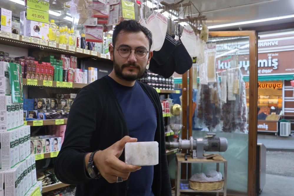 Tuz sabunu kadınlar tarafından daha çok talep edilen bir sabun çeşidi. Kozmetik sektöründe de kullanılan bir sabun türü. Tuz sabunu sadece tuzdan oluştuğu için herhangi bir kıvam verici, parfüm bulunmuyor. Tuz sabunu köpürmeyen bir sabun çeşididir. Banyo esnasında veya elinizi yüzünüzü yıkarken kullanabilirsiniz ve vücudunuza uyguladıktan bir süre sonra da bol su ile yıkamanız gerekmektedir. Sabunun şu andaki güncel fiyatı kalıp olarak 65 lira. Tuz sabunu, kuru ve hassas ciltlerde de tahriş ve alerjik reaksiyonlar gibi sonuçlar da oluşturabiliyor. Bu sabunun doktor gözetiminde kullanılmasını tavsiye ediyoruz" dedi.