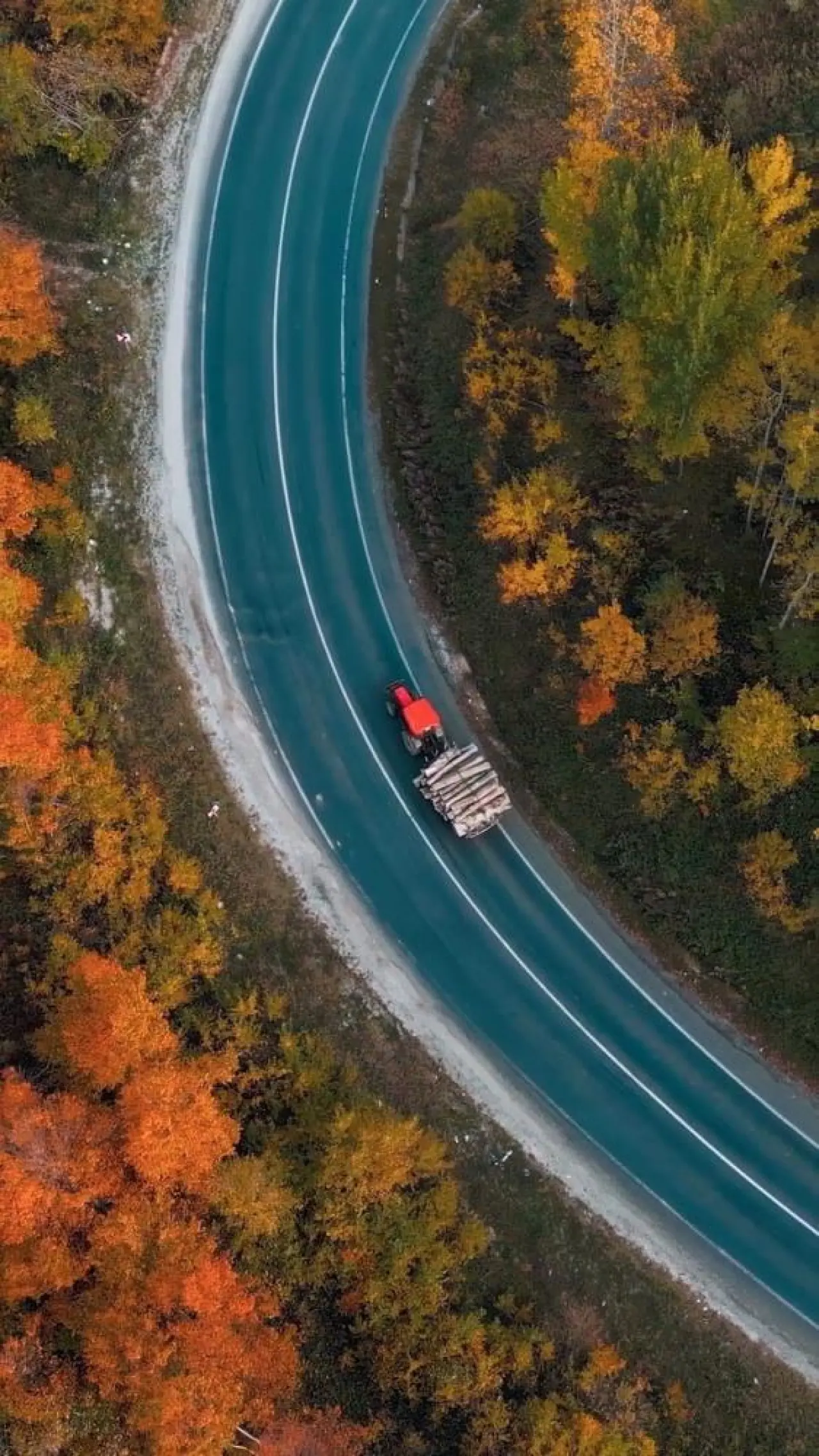 Bölgedeki bu muhteşem sonbahar dönüşümü, drone teknolojisiyle de kayıt altına alındı. Kuş bakışı çekilen görüntüler, yolun kıvrımlarının ve ormanın renk skalasının ne kadar etkileyici olduğunu net bir şekilde ortaya koydu. Havadan çekilen görüntülerde, sarı, kırmızı ve turuncu tonlarının ormanın yeşiliyle nasıl iç içe geçtiği ve ortaya çıkan ahenk, izleyenleri adeta büyüledi. Bu görüntüler, bölgenin doğal zenginliğini ve mevsimsel güzelliğini tüm çıplaklığıyla gözler önüne seriyor.