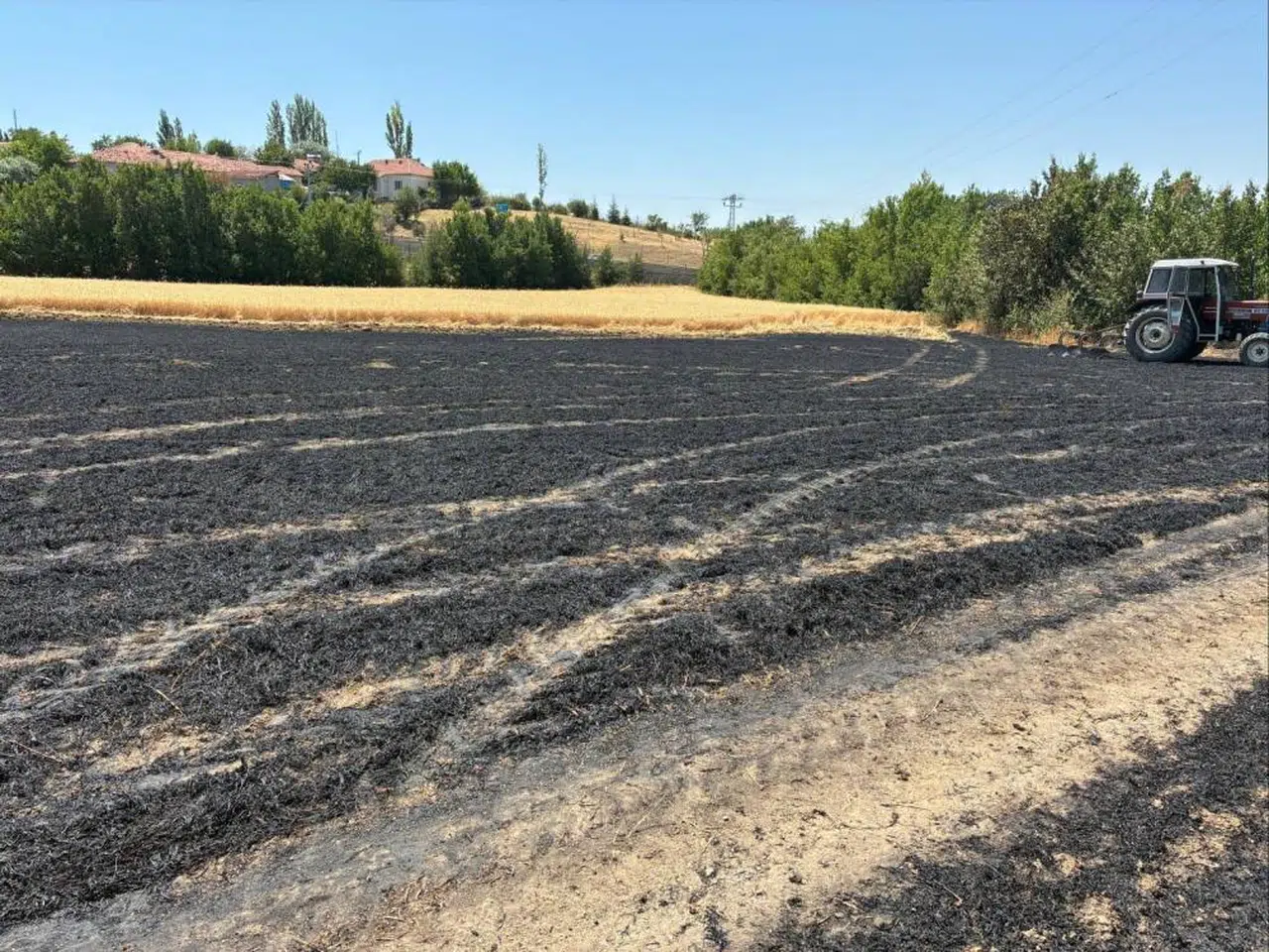 İhbar üzerine olay yerine sevk edilen itfaiye ekiplerinin hızlı müdahalesiyle yangın kontrol altına alındı. Ancak yapılan incelemede, 3 dönümlük buğday tarlasının tamamen yandığı, ayrıca 1 üzüm bağı, 2 vişne ağacı, 1 armut ağacı ve 4 erik ağacının da zarar gördüğü belirlendi.