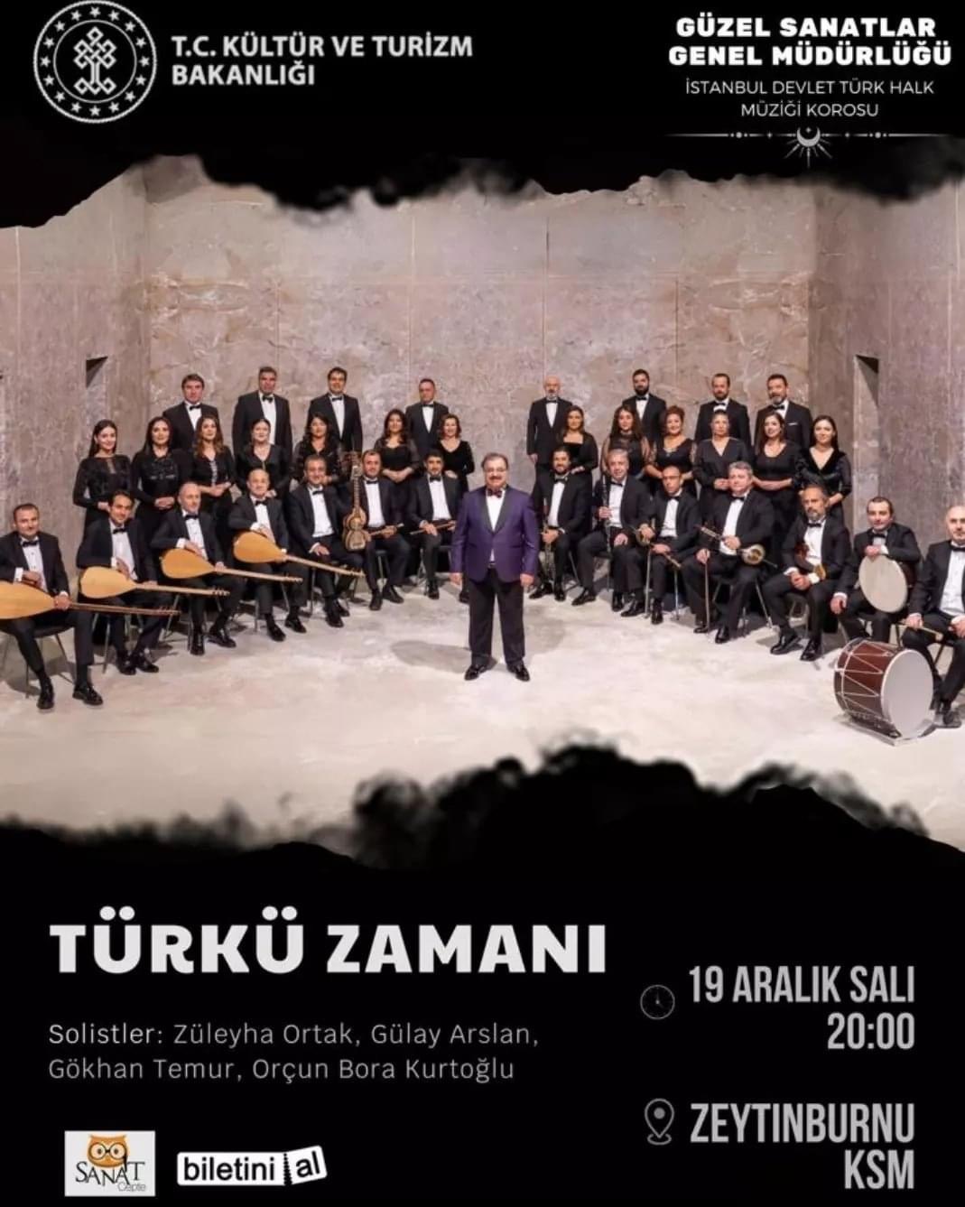 Bugün, İstanbul Devlet Türk Halk Müziği korosunun katılımıyla, şef Uğur Kaya'nın yöneteceği 'Türkü Zamanı' isimli konser düzenlenecek.