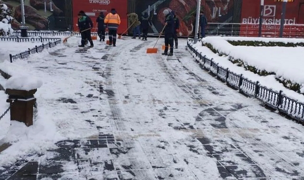 Kayseri Büyükşehir Belediyesi Park Bahçeler ve Ağaçlandırma Daire Başkanlığı ekipleri, sabahın ilk ışıklarında kent merkezindeki kaldırımlar ve park alanlarında karla mücadele çalışmaları yürüterek, yayaların güvenli ulaşımını sağlıyor.