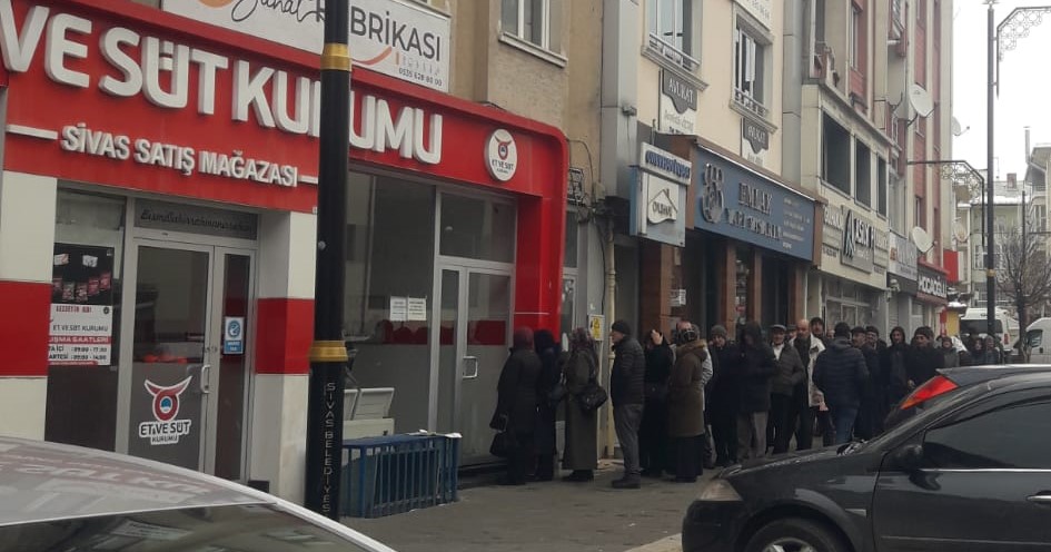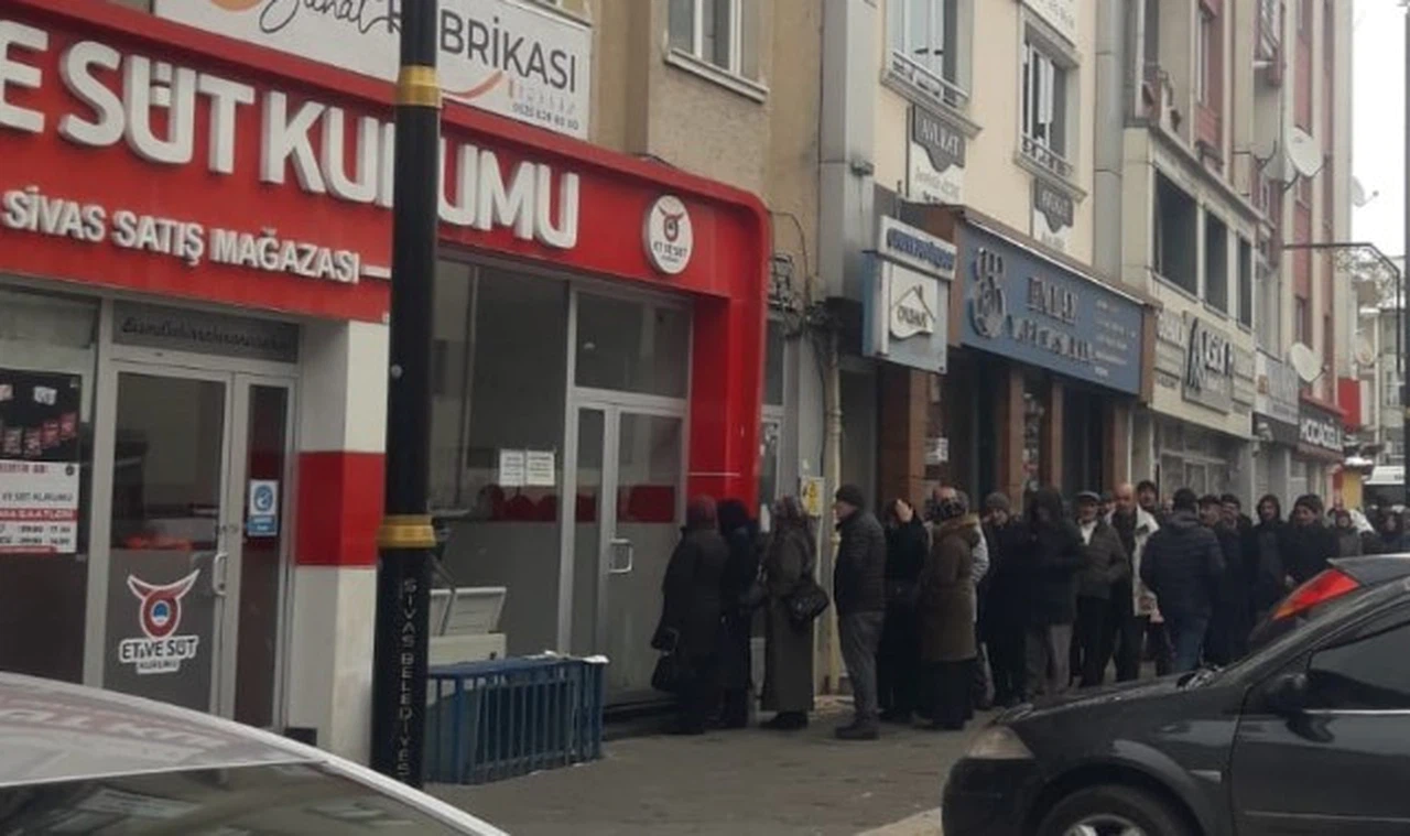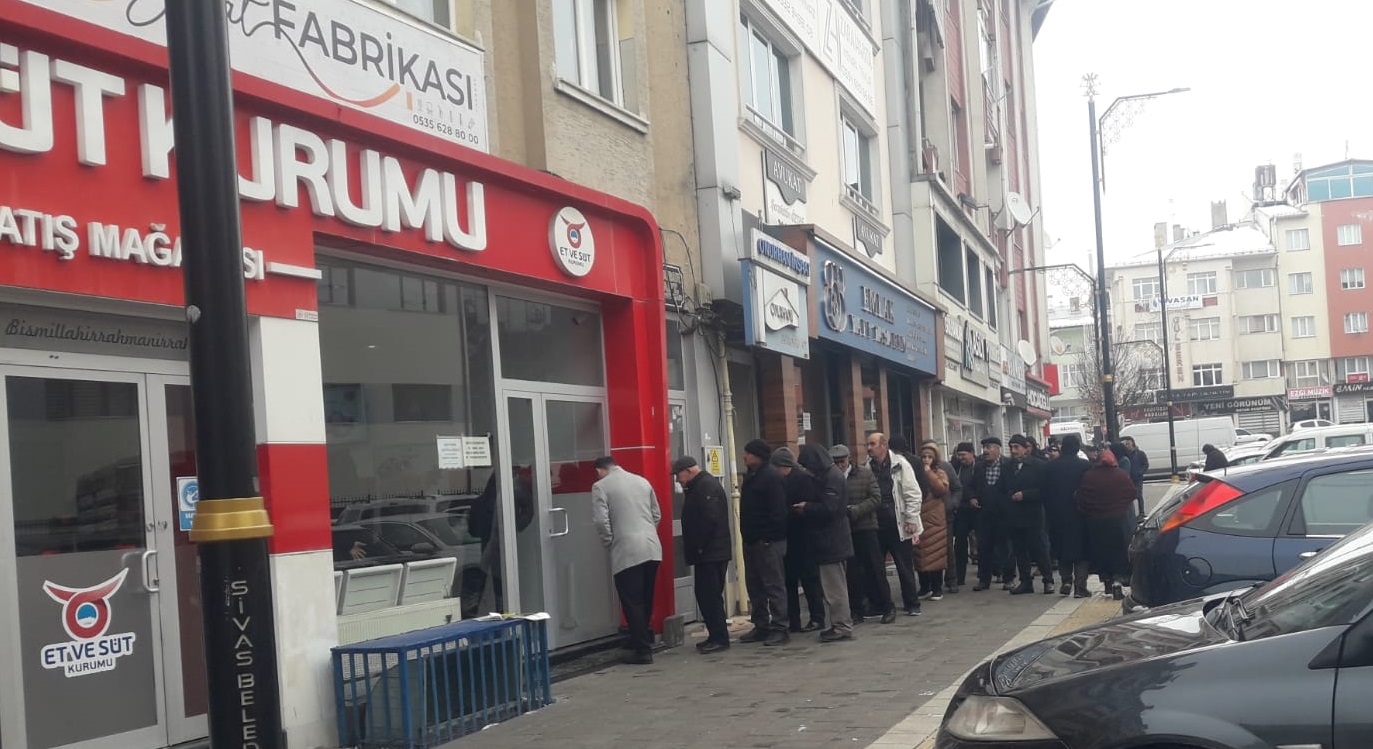 Sivas"ta soğuk havaya rağmen, Et ve Süt Kurumu önünde vatandaşların sabahın erken saatlerinden itibaren uzun süre sıra beklemelerine sebep oluyor. Sabah saat 07.00'den itibaren, kurumun sabah 09.00"da açılmasına kadar vatandaşlar, et ve süt ürünlerini almak için kuyruk oluşturuyor. Buz gibi havada, sıralar saatler öncesinden oluşuyor, soğuk rüzgar ve düşük sıcaklıklara rağmen bekleyişler devam ediyor.