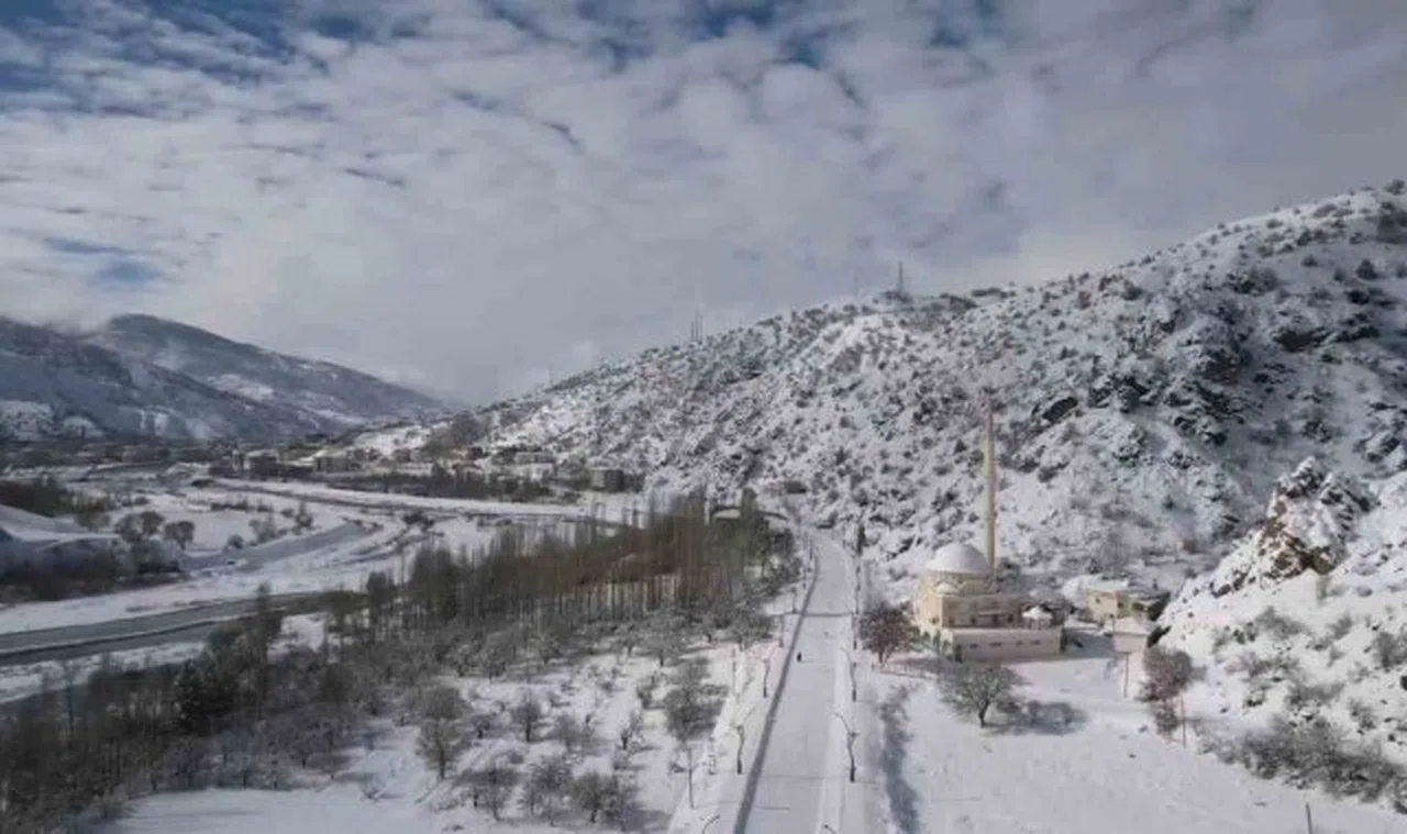 Giresun'un Çamoluk ilçesinde etkili olan kar yağışı, kent merkezini beyaza bürüdü. Yağışla birlikte ortaya çıkan seyrine doyumsuz manzara, dron kamerasıyla görüntülendi.