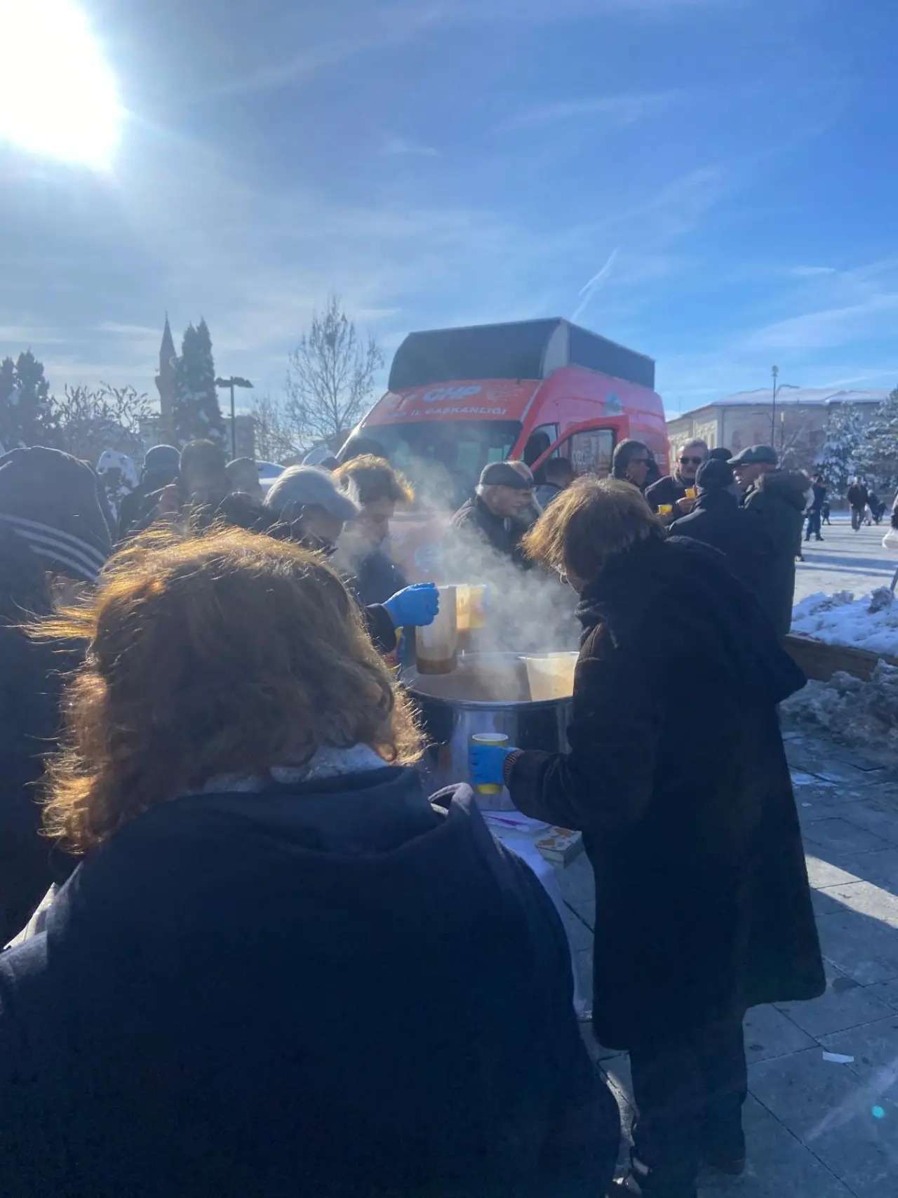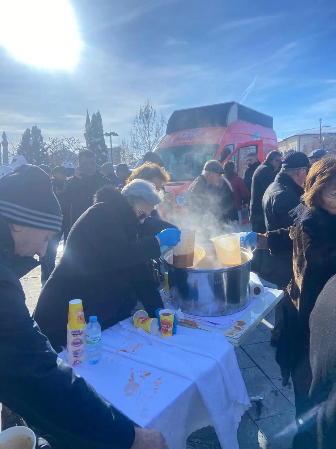 Hava sıcaklığının eksili değerlerde seyrettiği Sivas kent meydanından geçen vatandaşlar kurulan stantlarla karşılaştı. CHP Sivas İl Başkanlığı tarafından organize edilen bu sürpriz çalışma, meydanda kısa sürede uzun kuyrukların oluşmasına neden oldu. Soğuktan korunmak için adımlarını hızlandıran Sivaslılar, kurulan stantlarda bir mola vererek güne farklı bir enerjiyle başladı.