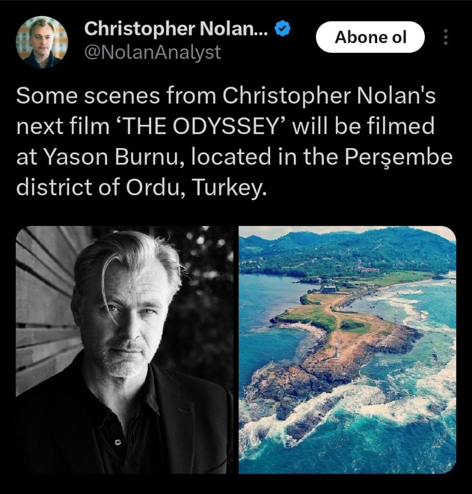 Christopher Nolan Art & Updates isimli sosyal medya hesabından yapılan açıklamada, Yason Burnu Yarım Adası ve ünlü yönetmenin fotoğrafı paylaşılarak, "Christopher Nolan'ın bir sonraki filmi 'The Odyssey' için bazı sahneler, Türkiye'nin Ordu ilinin Perşembe ilçesinde bulunan Yason Burnu'nda çekilecek" ifadelerine yer verildi.
