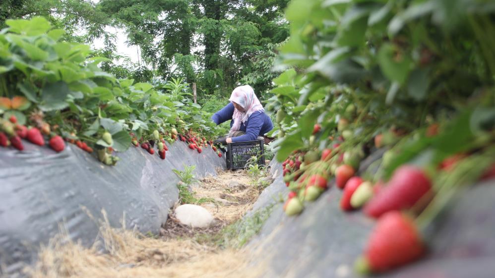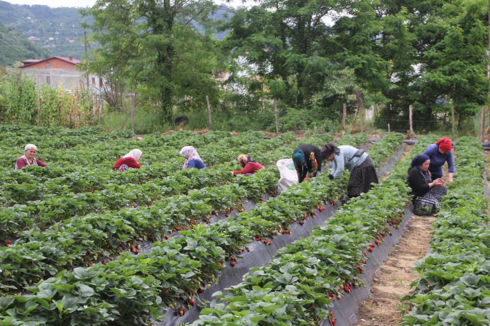 Ordu'da üretimi yapılan çilekte hasadın büyük bir kısmını yapan kadınlar, yılın yarısını tarlada geçirerek, aile ekonomilerine ciddi katkı sağlıyor.