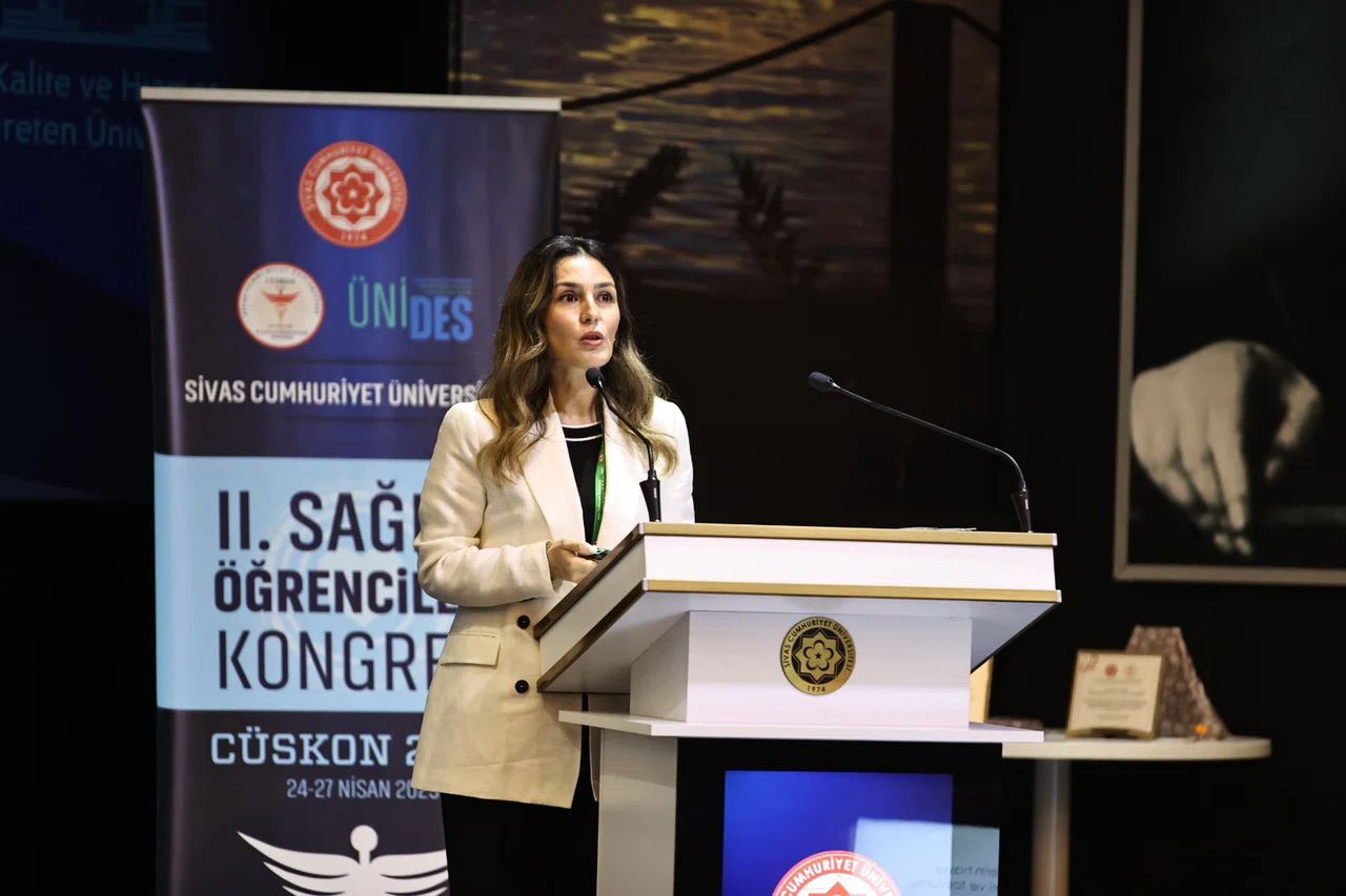 Sivas Valisi Yılmaz Şimşek’in eşi Dr. Çiğdem Olgun Şimşek, Sivas Cumhuriyet Üniversitesi'nde düzenlenen II. Sağlık Öğrencileri Kongresi’nin (CÜSKON2025) ikinci gününde Sağlıkta Sosyal Sorumluluk paneline katıldı.