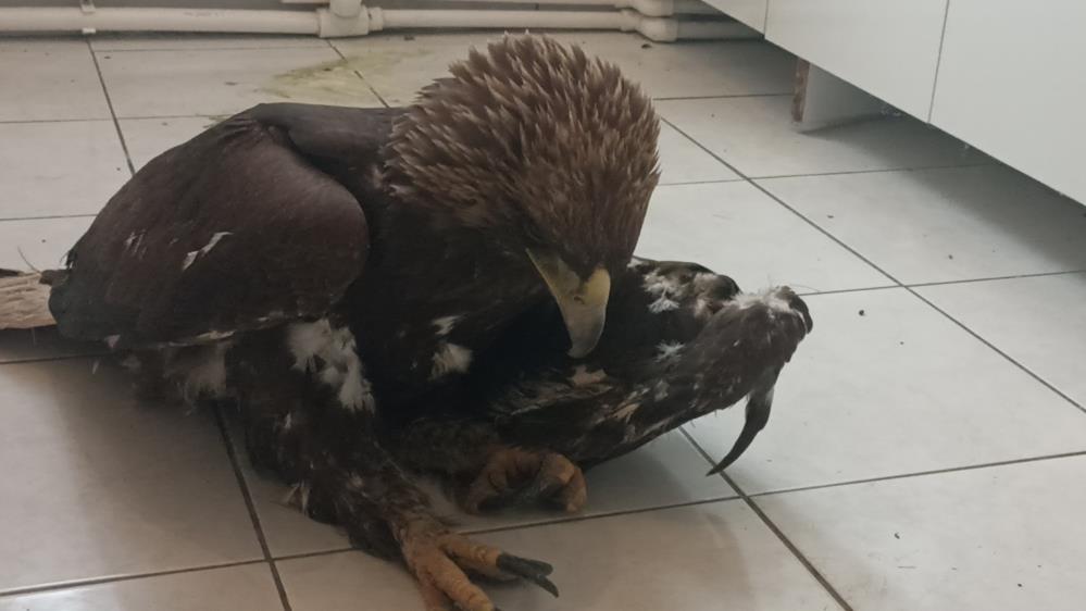 Gürün ilçesine getirilen yaralı kaya kartalı, veteriner hekim kontrolünden geçtikten sonra Doğa Koruma ve Milli Parklar Müdürlüğüne teslim edilecek.