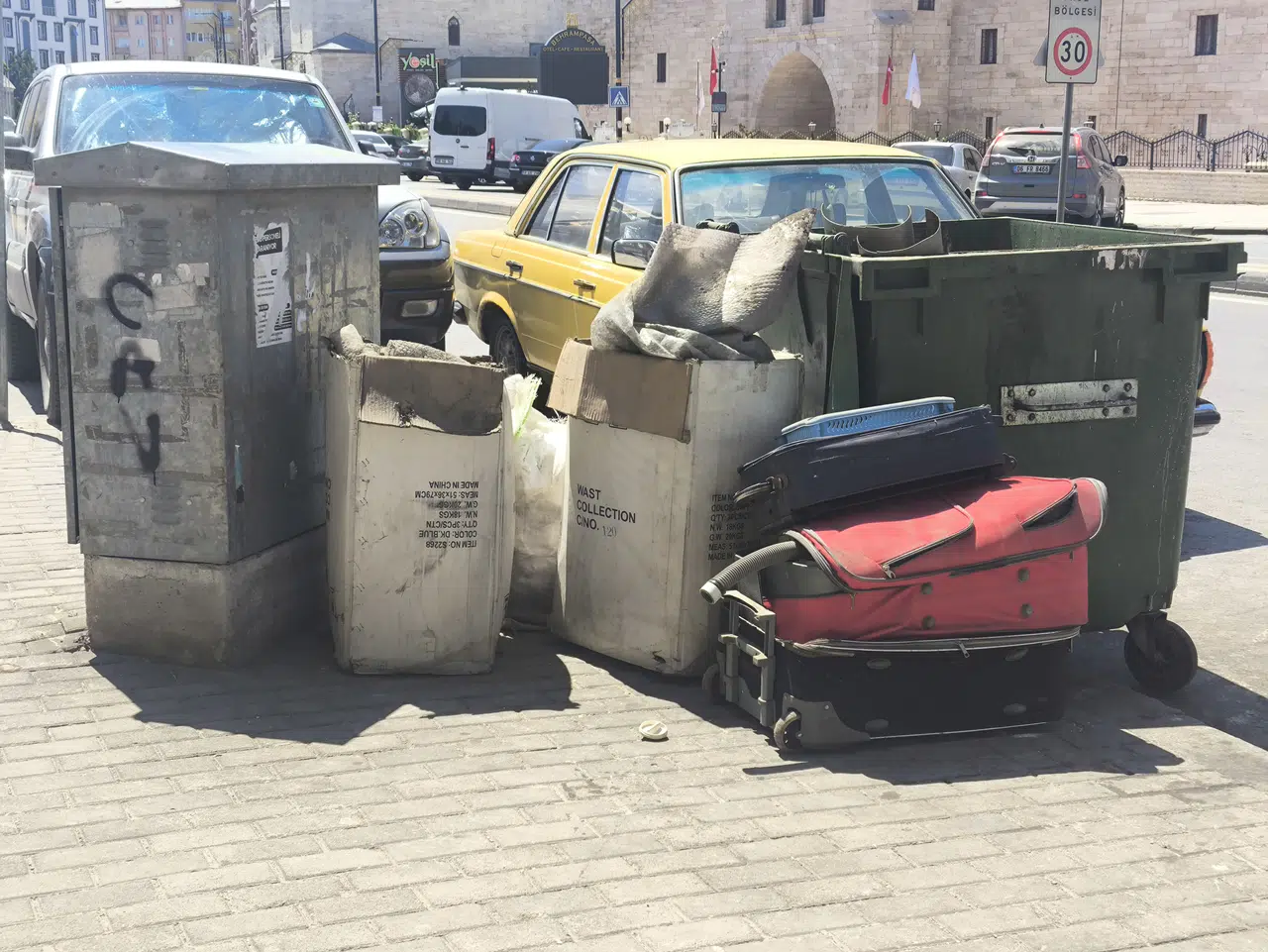 Özellikle gündüz saatlerinde yoğun olarak kullanılan cadde üzerinde, çöp konteynerlerinin çevresine bırakılan evsel atıklar dikkat çekiyor. Konteynerin içine sığmayan çöplerin gelişi güzel bir şekilde yanına bırakılması, sadece estetik açıdan değil, sağlık açısından da ciddi riskler doğuruyor.