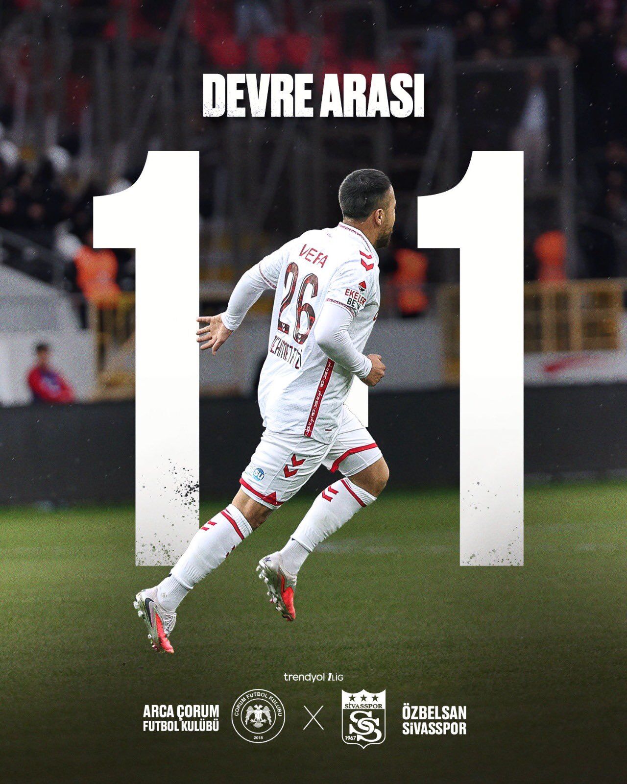 Karşılaşmanın 26. dakikasında ev sahibi ekip Çorum FK, geliştirdiği atakta golü buldu. Braian Samudio’nun attığı golle skor 1-0’a geldi. Bu golün ardından Çorum FK oyunun kontrolünü elinde tutmaya çalışırken, Sivasspor ise beraberlik için baskısını artırdı.