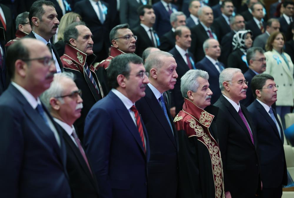 İlk derece ve istinaf mahkemelerinde 338 bin 611, Danıştay"da ise 114 bin 224 derdest dosya bulunduğunu, 2023 yılında toplam 860 bin 494 dosyanın karara bağlandığını ifade eden Cumhurbaşkanı Erdoğan şunları söyledi: