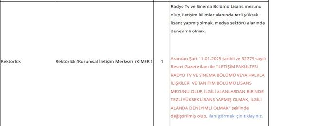 31 Aralık 2024 tarihinde resmi gazetede ve üniversitenin sayfasında yayımlanan Sivas Cumhuriyet Üniversitesi Rektörlük (KİMER) öğretim görevlisi alım ilanında ilanın fotoğrafta olduğu gibi genel bir ilan olduğu ilanın 13 Ocak 2025 tarihinde resmi gazetede ve üniversitenin sayfasında değiştirildiği görülmektedir. İddiaya göre ilanın değişmesinin nedeninin belirli kişileri öne çıkarmak amacıyla yapıldığına dair çeşitli tartışmalar yaşanıyor.