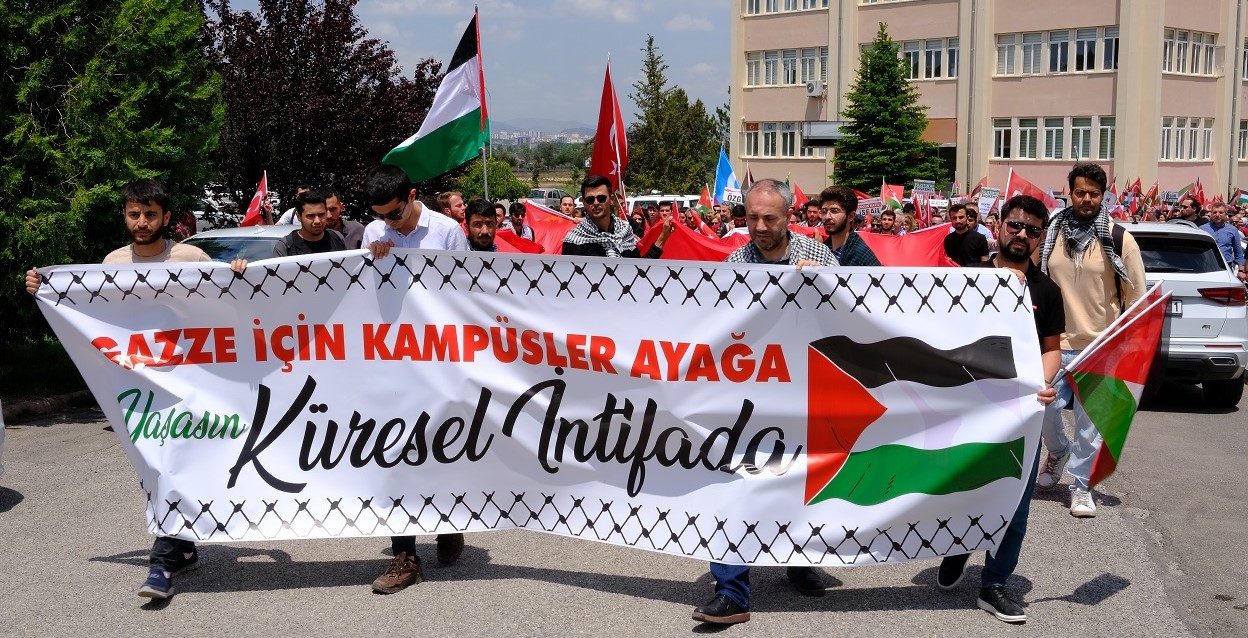 Yürüyüşün ardından Rektör Prof. Dr. Yıldız yaptığı açıklamada, “Bugün dünyanın gözü önünde bir millet yok ediliyor, soykırıma uğruyor. Bugün kardeşlerini, "korkmayın, birazdan öleceğiz,' sözleriyle teselli eden, tabuttan daha güvenli bir yer bilmeyen çocukların yaşadığı; bütün öğrencileri şehit olduğu için eğitimin resmen sona erdiği okulların olduğu, "Büyüyünce ne olacaksın,” sorusuna, "biz Filistinli çocuklar büyüyemeyiz ki," diyen ve büyüyemeyen yavruların; oyunları, bombalardan kaçmak, sedyeyle yaralı taşımak, enkaz kazmak ve şehitlik olan çocukların yaşadığı, kundaktaki bebeklerin kafasının koptuğu, insanların diri diri yakıldığı Filistin için toplandık. Bugün burada toplandık; çünkü biz, hala hayatta olan masumlar için barış sağlanamadığı; katil İsrail'in soykırımına engel olunamadığı için toplandık. Tarihte kendilerine yaşatılan korkunç soykırımın mağduriyeti üzerinden kendine uluslararası meşruiyet alanı açmış bir devlete ve ona karşı duyulan suçluluk psikolojisi içinde yıllardır bu zulme ses çıkarmayan Batının iki yüzlüğüne şahit olmaktayız.” dedi.