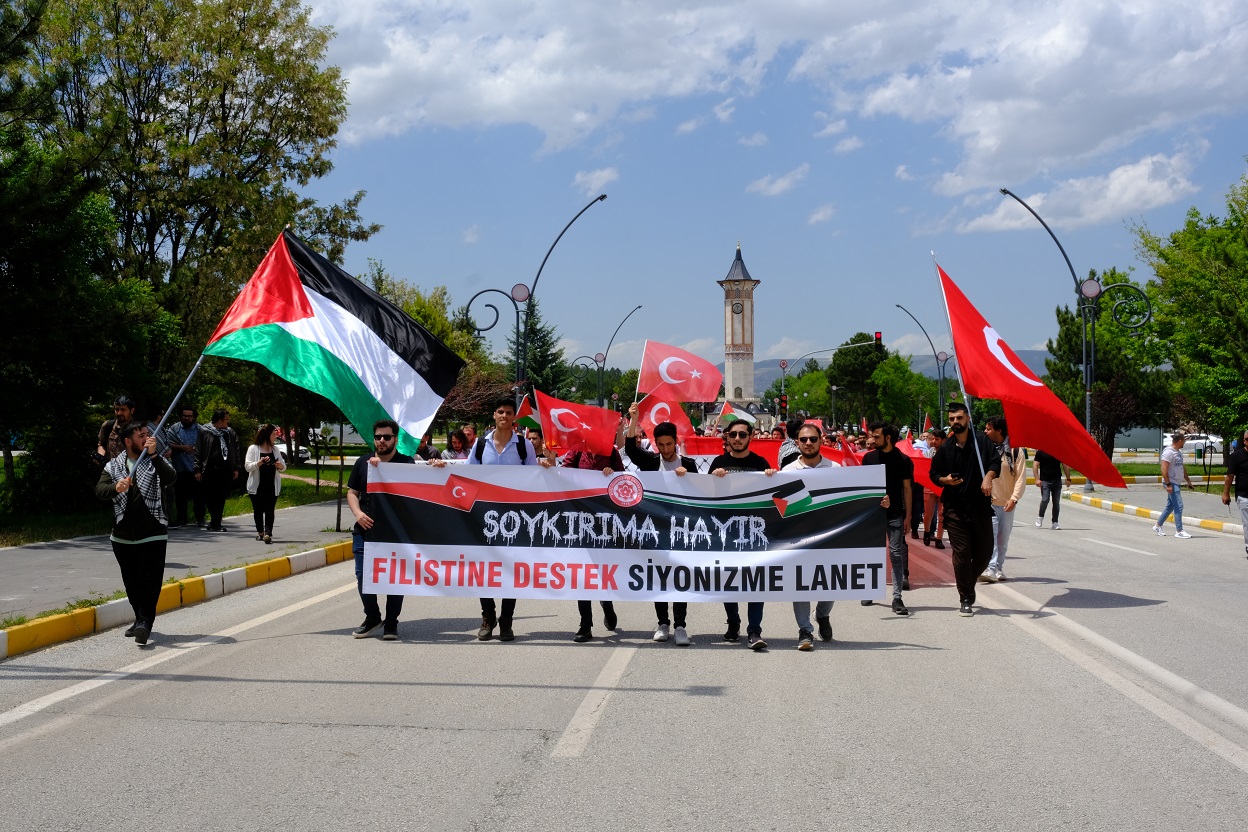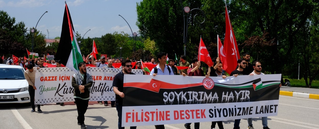 Sivas Cumhuriyet Üniversitesi"nde katil İsrail"in Gazze"deki masumlara yaptığı zulme sessiz kalmamak amacıyla “Filistin"e Destek Yürüyüşü” düzenlendi.