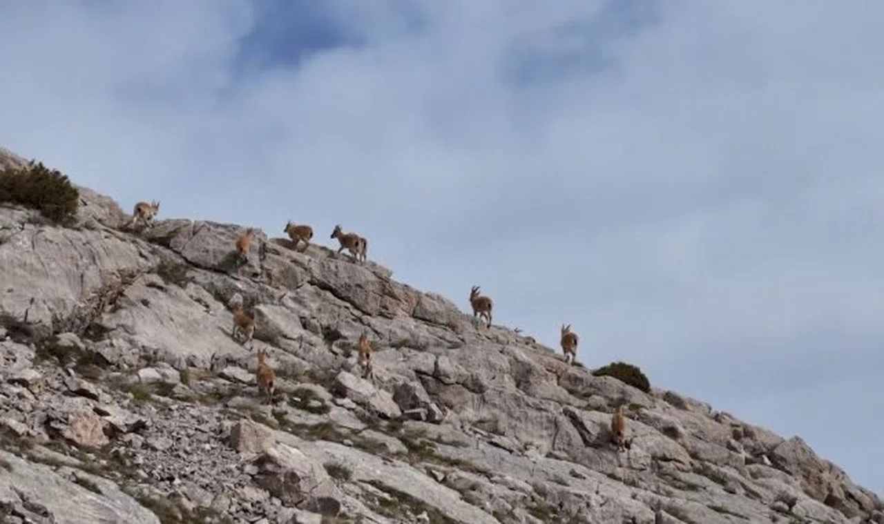 Dağ keçileri, kırsalda otladıktan sonra yeniden zirvelere doğru giderek gözden kayboluyor.