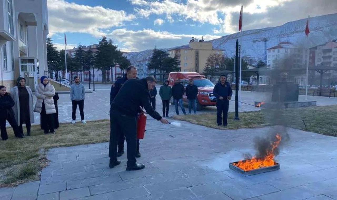 Malatya'nın Darende ilçesinde kurum çalışanlarına yönelik yangın söndürme tatbikatı yapıldı.