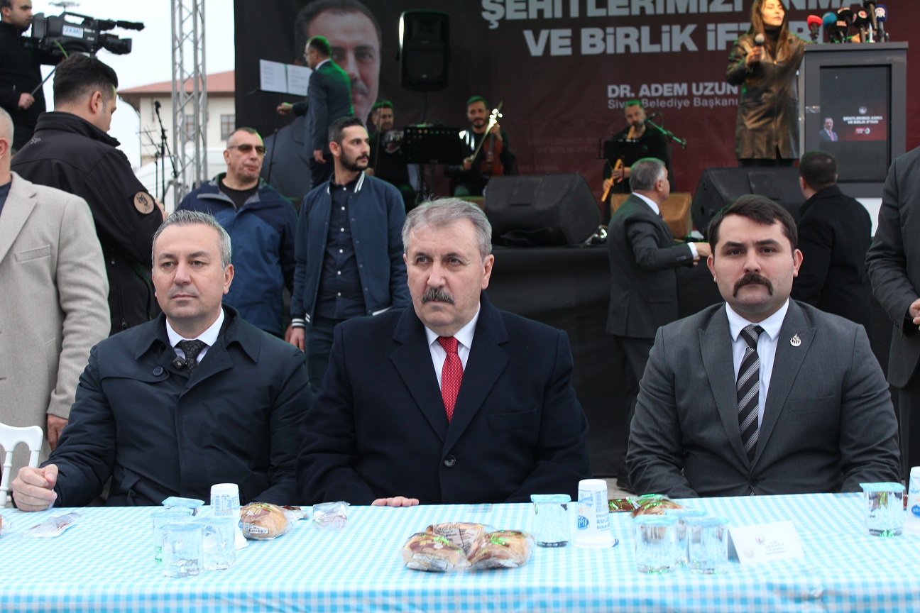 Yazıcıoğlu’nun yol arkadaşlarının mezarlarına karanfil bırakıp dua eden BBP Genel Başkanı Destici, Sivas Belediye Başkanı Dr. Adem Uzun ve beraberindekiler Sivas Belediyesi tarafından İstasyon Caddesi’nde düzenlenen Birlik İftarına katıldı.