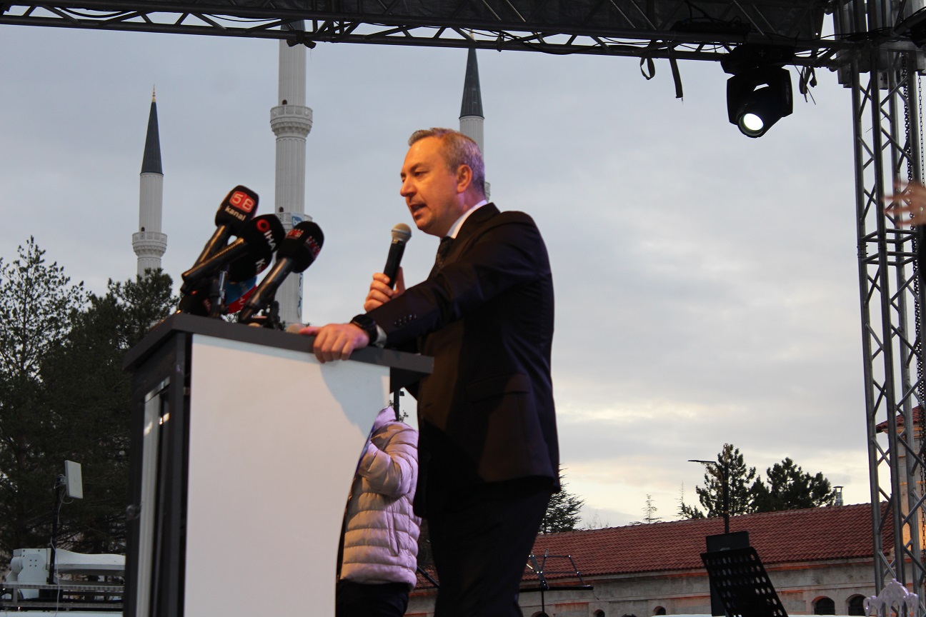 Seçimlerin üzerinden henüz 1 yıl gibi kısa bir süre geçmesine rağmen Sivas Belediye Başkanı Adem Uzun’un çok güzel çalışmalara imza attığını da sözlerine ekleyen BBP Genel Başkanı Mustafa Destici, açıklamasına şöyle devam etti; “Kıymetli Sivaslı kardeşlerim geçtiğimiz yılda hemen hemen bu günlerde yine Sivas’ta bu tarihi meydanda iftar sofrasında bir araya gelmiştik. O günde burada binlerce kardeşimiz vardı. Bugün de burada maşallah ucu bucağı gözükmüyor on binlerce Sivaslı kardeşimizle iftar sofrasındayız. Sizlerle Yiğidolarla, Sivaslılarla bir Ramazan sevincini yaşamaktan iftar sofrasına oturmaktan büyük bir memnuniyet duyduğumu ifade etmek istiyorum. Kıymetli kardeşlerim siz Sivas olarak her zaman şehit liderimiz Muhsin başkanımıza, arkadaşlarımıza, partimize, ocağımıza hep vefanızı gösterdiniz. Allah sizlerden razı olsun. Biz de size karşı hep vefalı olduk. Bundan sonra da aynı şekilde vefamızı sürdürmeye devam edeceğiz. Belediye seçimleri yapıldı üzerinden 1 yıl geçti. Değişimi, farkı siz de büyük şekilde fark ettiniz. Yolun daha başındayız. İnşallah bu yapılan hizmetleri kat be kat arttıracak ve Sivas’ta yerel anlamda ne yapılması gerekiyorsa belediye başkanımızın öncülüğünde, belediye başkanlığı kadrolarımızla ve tüm STK’ların desteğiyle Sivas’ta yer alan tüm siyasi partilerimizin desteğiyle kamu bürokrasinin desteğiyle hükümetin desteğiyle, ilgili bakanlıklarımızın desteğiyle Cumhurbaşkanımızın desteğiyle ve tabiki bizlerin desteğiyle inşallah bu hizmetleri bir bir gerçekleştireceğiz. 1 yıl gibi kısa bir sürede bu kadar hizmeti gerçekleştiren belediye başkanımıza ve kadrolarına sizlerin huzurunda teşekkür ediyorum ve bundan sonraki çalışmalarında da üstün başarılar diliyorum.”