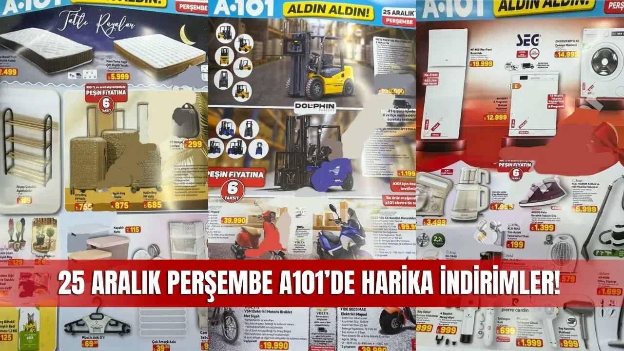 A101 Market, 25 Aralık 2025 Perşembe günü itibarıyla Sivas’taki mağazalarında geçerli olacak yeni aktüel kataloğunu duyurdu. A101 Aldın Aldın kampanyasında teknoloji, beyaz eşya, elektrikli ev aletleri, bisiklet-motosiklet ve züccaciye kategorilerinde dikkat çeken fırsatlar yer alıyor.