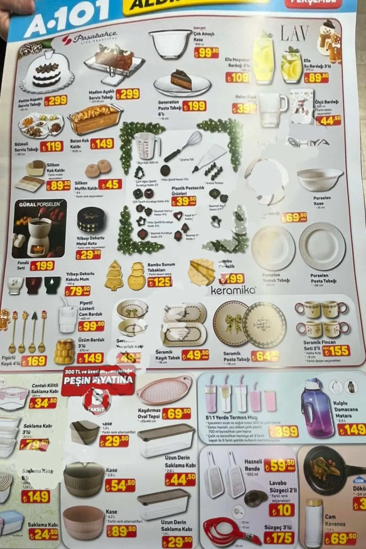 Sivas A101 marketlerinde kampanya kapsamında satışa sunulacak züccaciye ve mutfak ürünlerinden bazıları:
