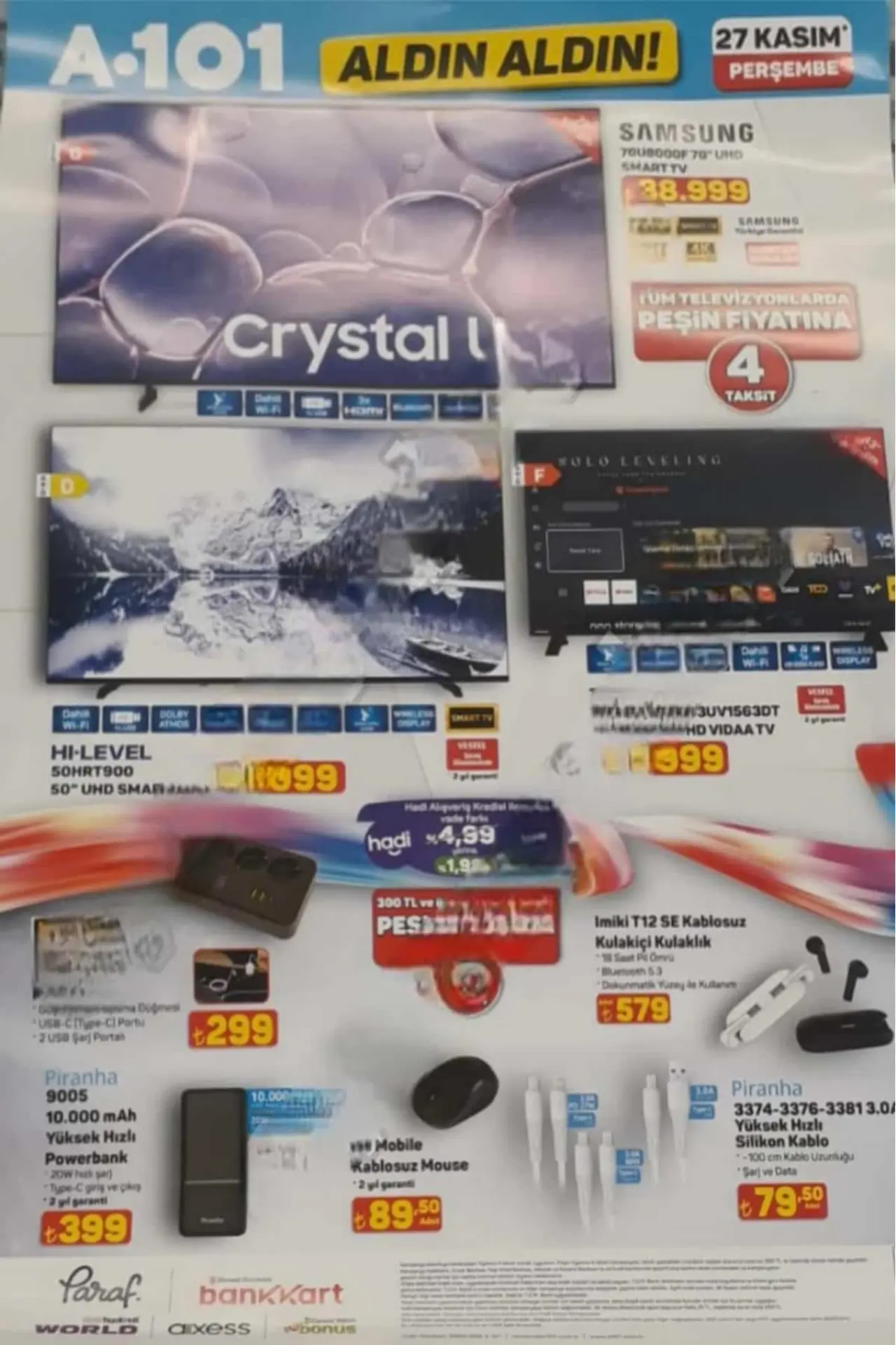 Bu haftanın en çok merak edilen kategorisi her zaman olduğu gibi teknoloji oldu. A101, peşin fiyatına 3 taksit avantajıyla öne çıkan TV modellerini kampanyaya dahil etti.