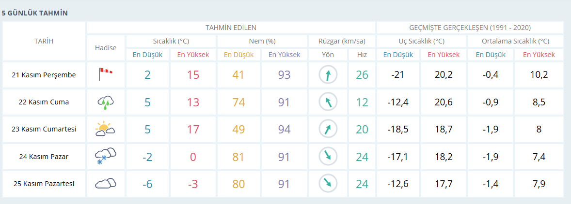 Sivas"ta hava durumu tahminleri, önümüzdeki günlerde sıcaklıkların ciddi şekilde düşeceğini gösteriyor. Özellikle 24 Kasım Pazar günü kar yağışı bekleniyor. Hava sıcaklıkları, sıfırın altına inerek gece -2 dereceye kadar düşecek. Bu durum, Sivaslıların kış şartlarına hazırlıksız yakalanabileceğini düşündürüyor. Uzmanlar, vatandaşları ani hava değişikliklerine karşı tedbirli olmaları konusunda uyardı.