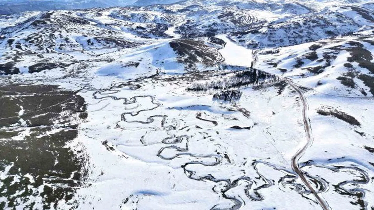 Tokat ile Ordu il sınırları arasında yer alan Perşembe Yaylası'ndaki menderesler, karla kaplı manzarasıyla insan damarlarını andıran büyüleyici bir görsel şölen sundu.