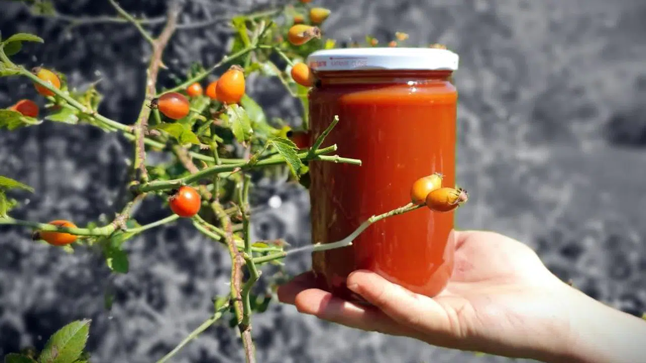 Haşlandıktan sonra ezilerek kevgirden geçirilen kuşburnu, ocakta veya sobanın üzerinde bir miktar şeker katılarak bir süre daha pişirildikten sonra kavanozlara dolduruluyor.