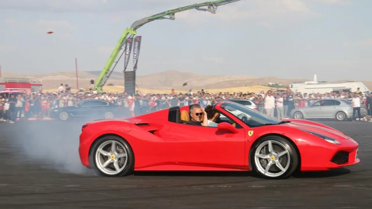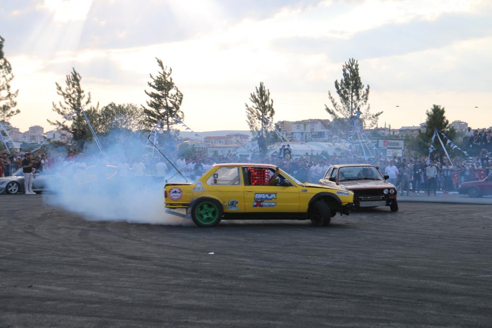 Uzun'un konuşmasının ardından sürücüler alanda drift atarak lastik yaktı. Lastik dumanı alanı kaplarken, o anlar havadan da görüntülendi.
