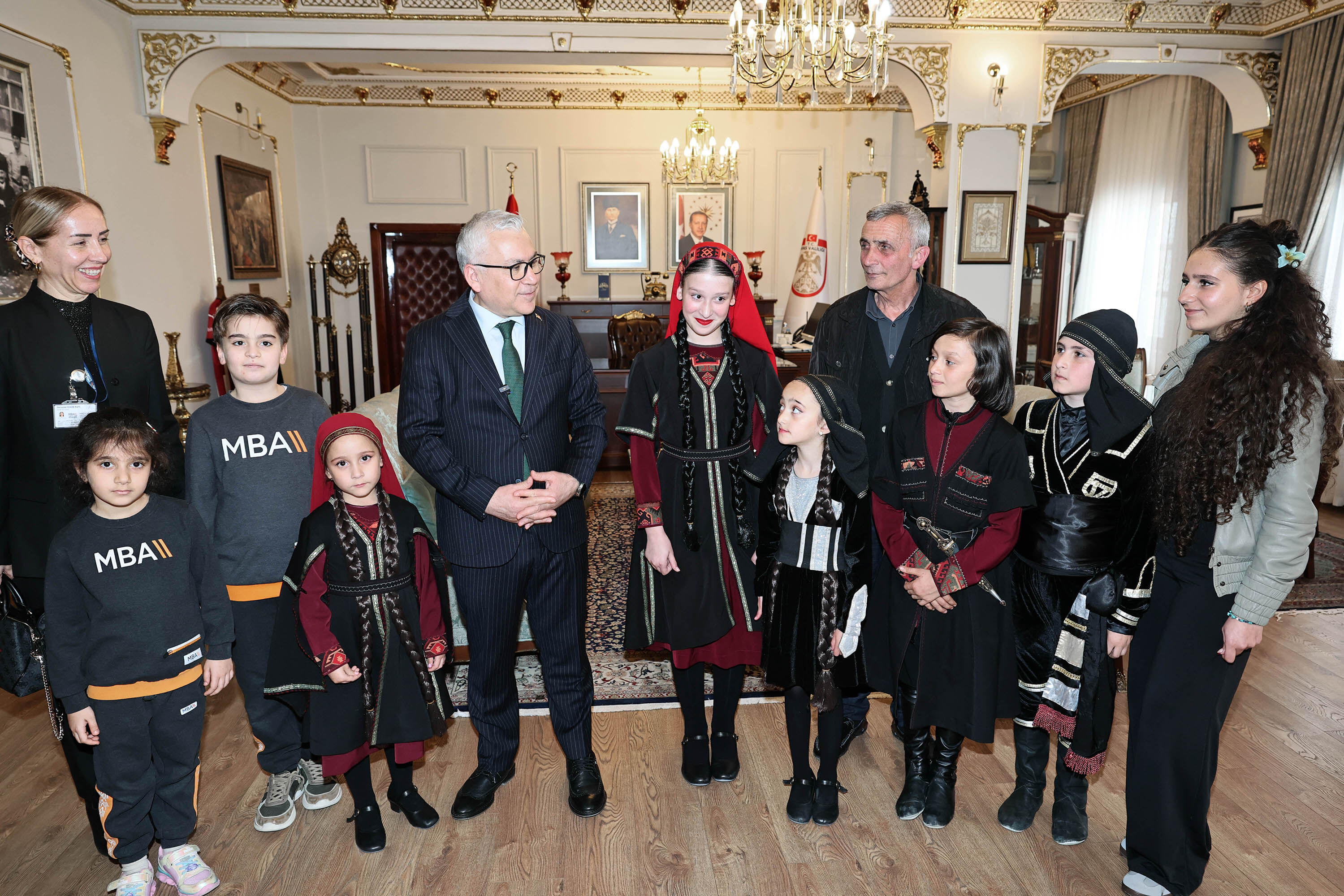 23 Nisan Ulusal Egemenlik ve Çocuk Bayramı, Sivas’ta bu yıl sınırları aşan bir dostluk görüntüsüne sahne oldu. MBA Okulları tarafından şehre getirilen Gürcistan uyruklu öğrenciler, kutlamalar kapsamında Sivas Valisi Yılmaz Şimşek’i makamında ziyaret etti. Heyecanları gözlerinden okunan minik misafirlerle yakından ilgilenen Vali Şimşek, çocukların bayramını kutlarken makam odasında oldukça samimi bir atmosfer oluştu. Sivas’ın misafirperverliğini çocuklara hissettiren Vali Şimşek, bu anlamlı buluşmadan duyduğu memnuniyeti dile getirdi.