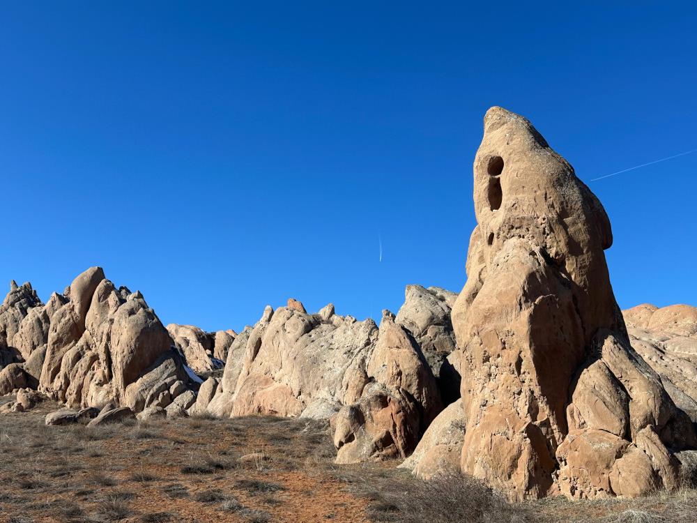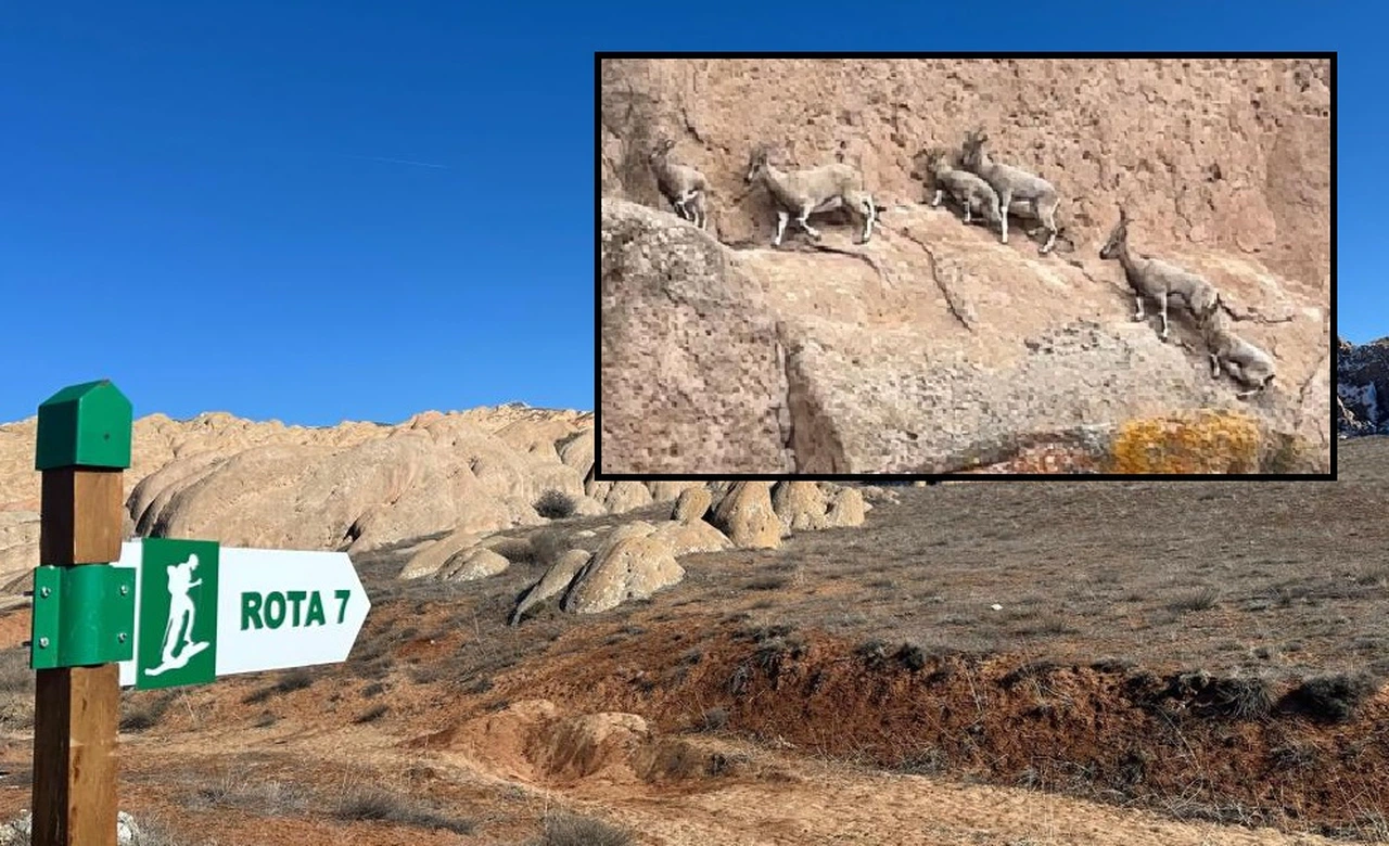 Sivas merkeze bağlı Eğribucak Köyü eski ismiyle Gerne köyünde rengi ve yapısıyla Mars gezegenine benzetildiği için 'Dünya'daki Mars' olarak adlandırılan Eğribucak kayalıklarında nesli tükenme tehlikesi altında olan ve avlanması yasaklanan dağ keçisi sürüsü görüntülendi.