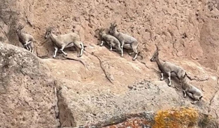 İlk başta sayılarının az olduğunu düşünen Durna, “Nesli tükenmekte olan bu hayvanları görünce çok mutlu oldum. Önce bir iki tanesini gördüm, kayanın arkasına geçtiğimde ise 8-9 tane olduklarını gördüm. İlk önce keçilerle bakıştık daha sonra videolarını çektim. Fazla sürmeden kayalıkların arkasına doğru gözden kaybolup gittiler” dedi.